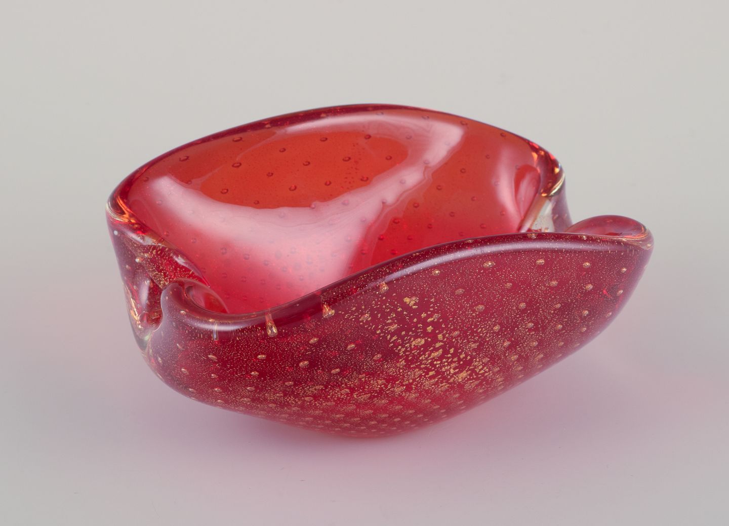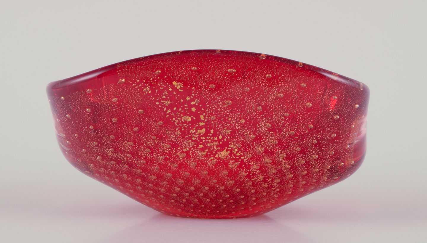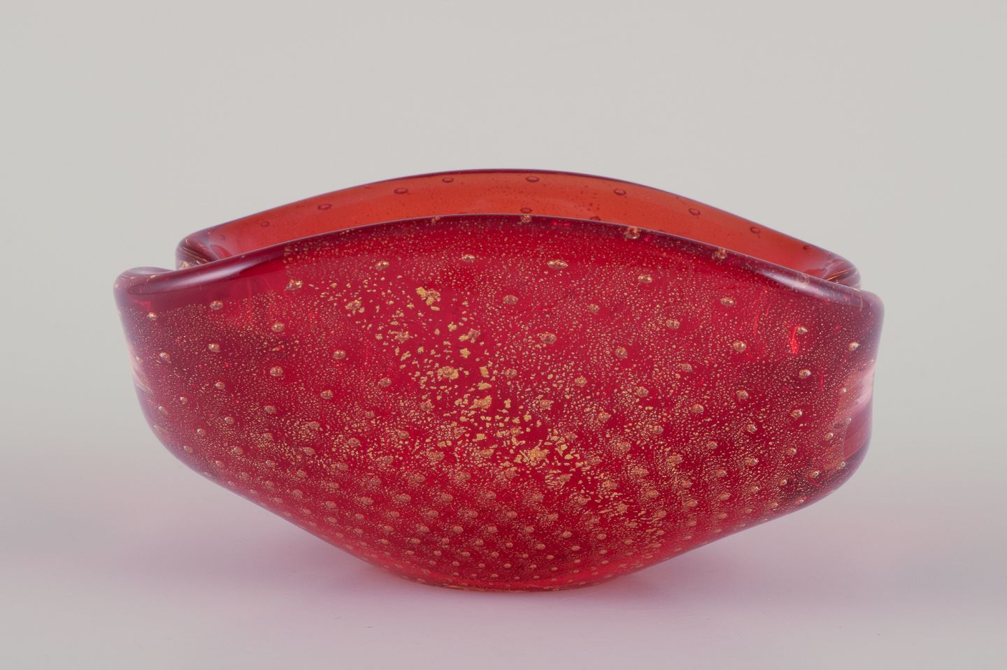 Murano, Italien. Skål i rødt kunstglas og guldstøv.
