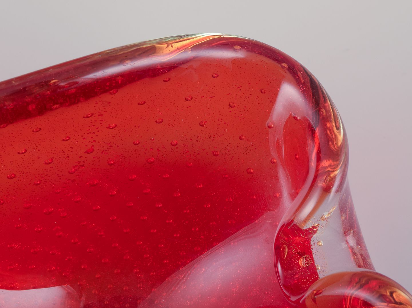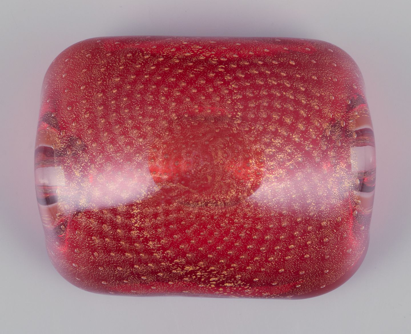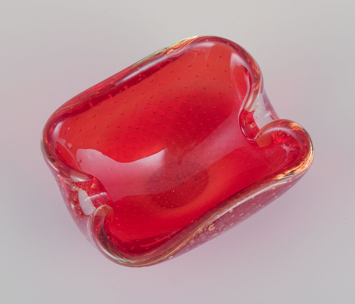 Murano, Italien. Skål i rødt kunstglas og guldstøv.