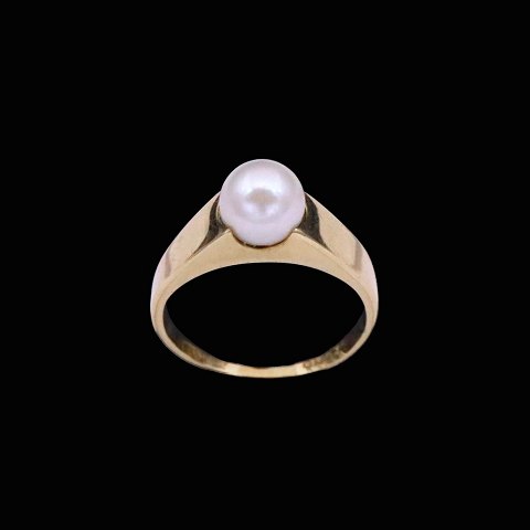 Otto Carl Johan Hansen - Copenhagen. 14k Gold Ring with Pearl.