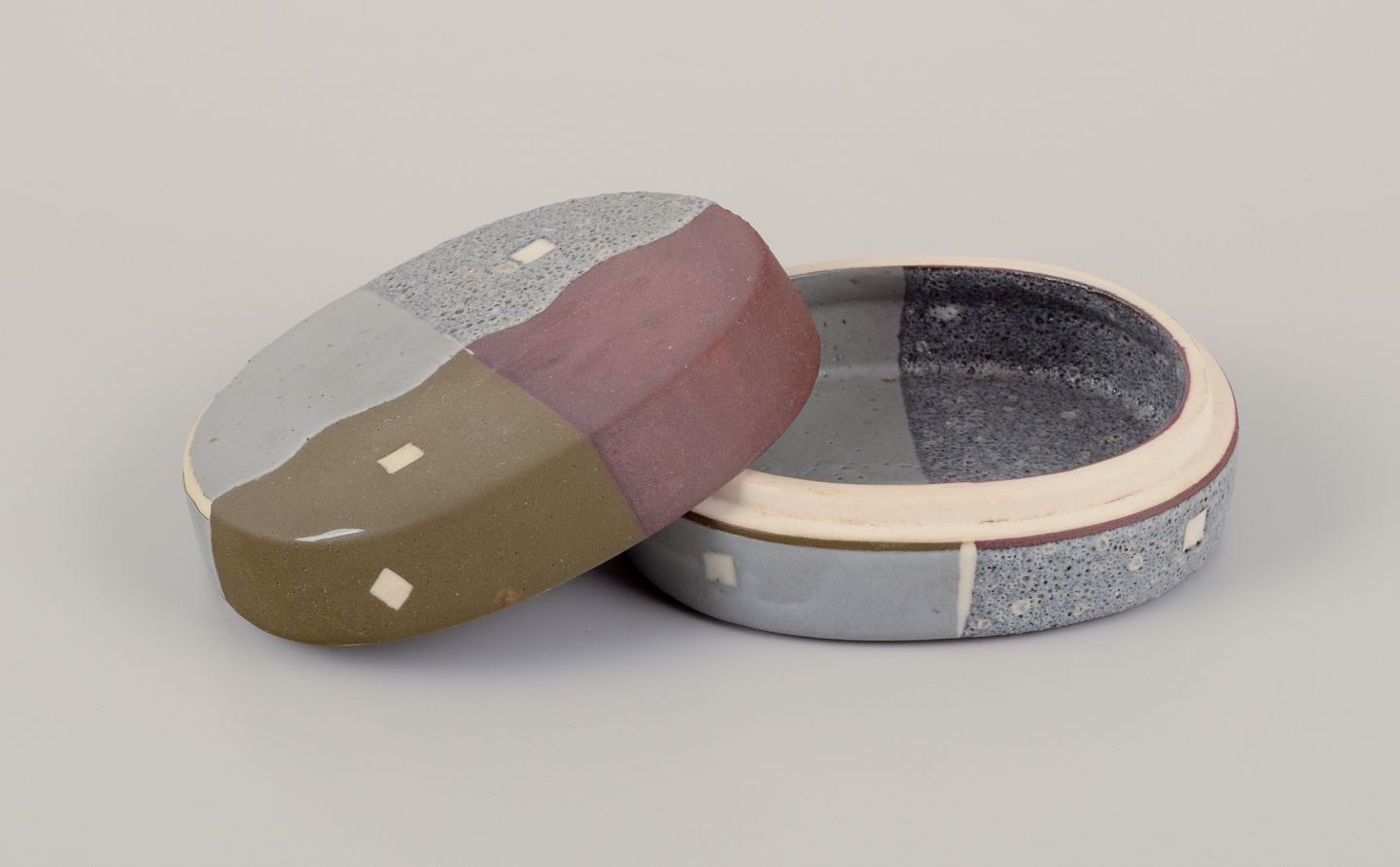 Unika lågæske i keramik. Hånddekoreret i mat og glansfuld glasur i forskellige farver.