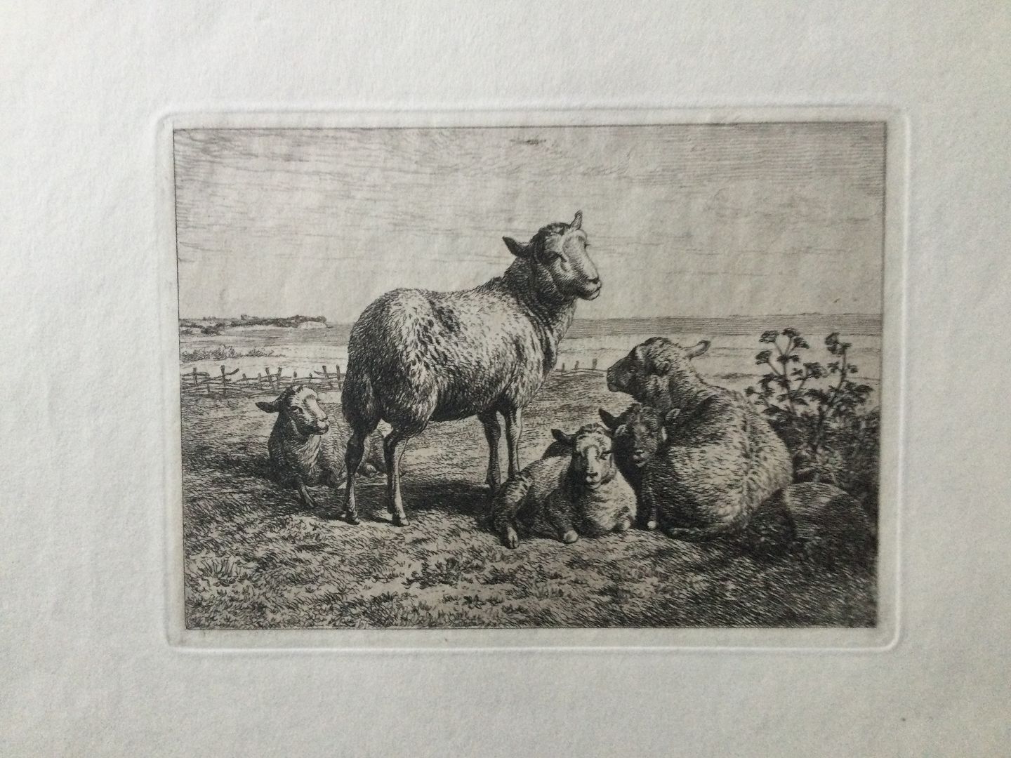 Radering af A.P. Madsen 1855 - Får på marken.