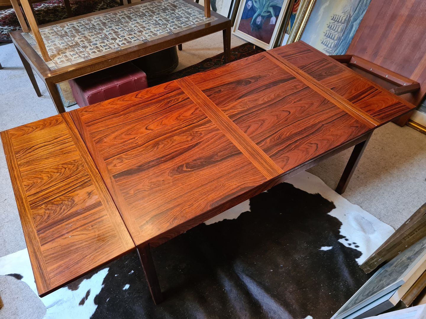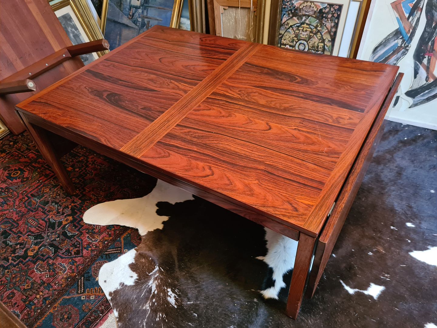 Dansk Design sofabord fra 1970'erne i palisanderfinér. Fremstår velholdt, stabilt og udmærket funktionelt, dog med lidt brugsspor på bordpladen i form af enkelte overfladeridser.
