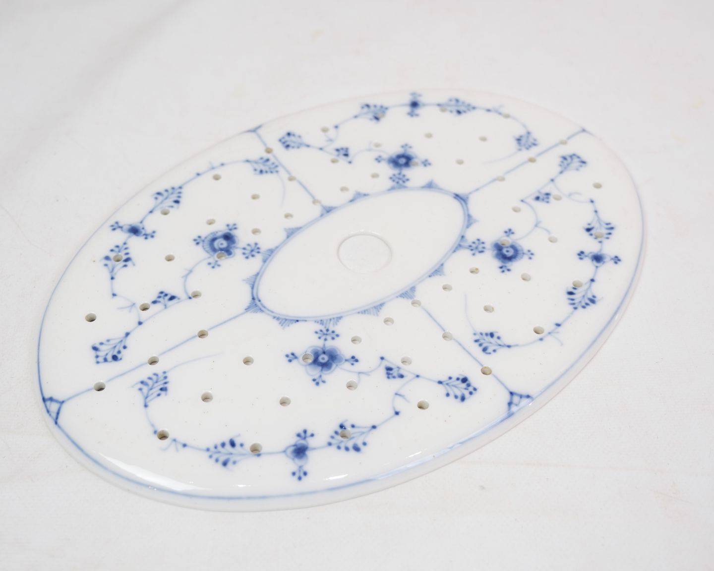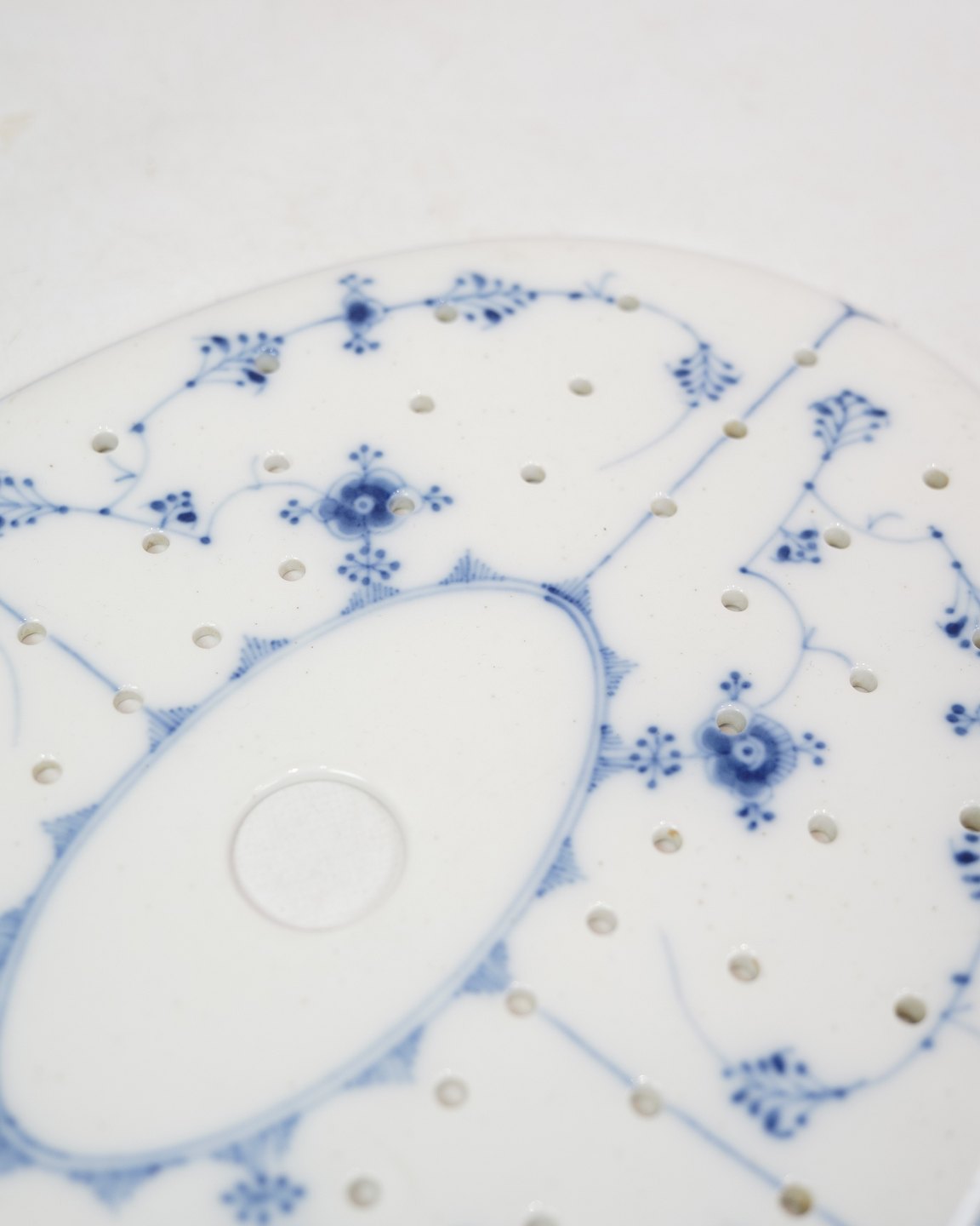 Det ovale Royal Copenhagen Musselmalet løse fiskerist til fiskefadet (Dekorationsnummer 1/110) er en smuk og funktionel tilføjelse til dit porcelænssæt. Dette løse fiskeri er designet specielt til at supplere fiskefadet og tilføjer et unikt og dekorativt touch til din borddækning.