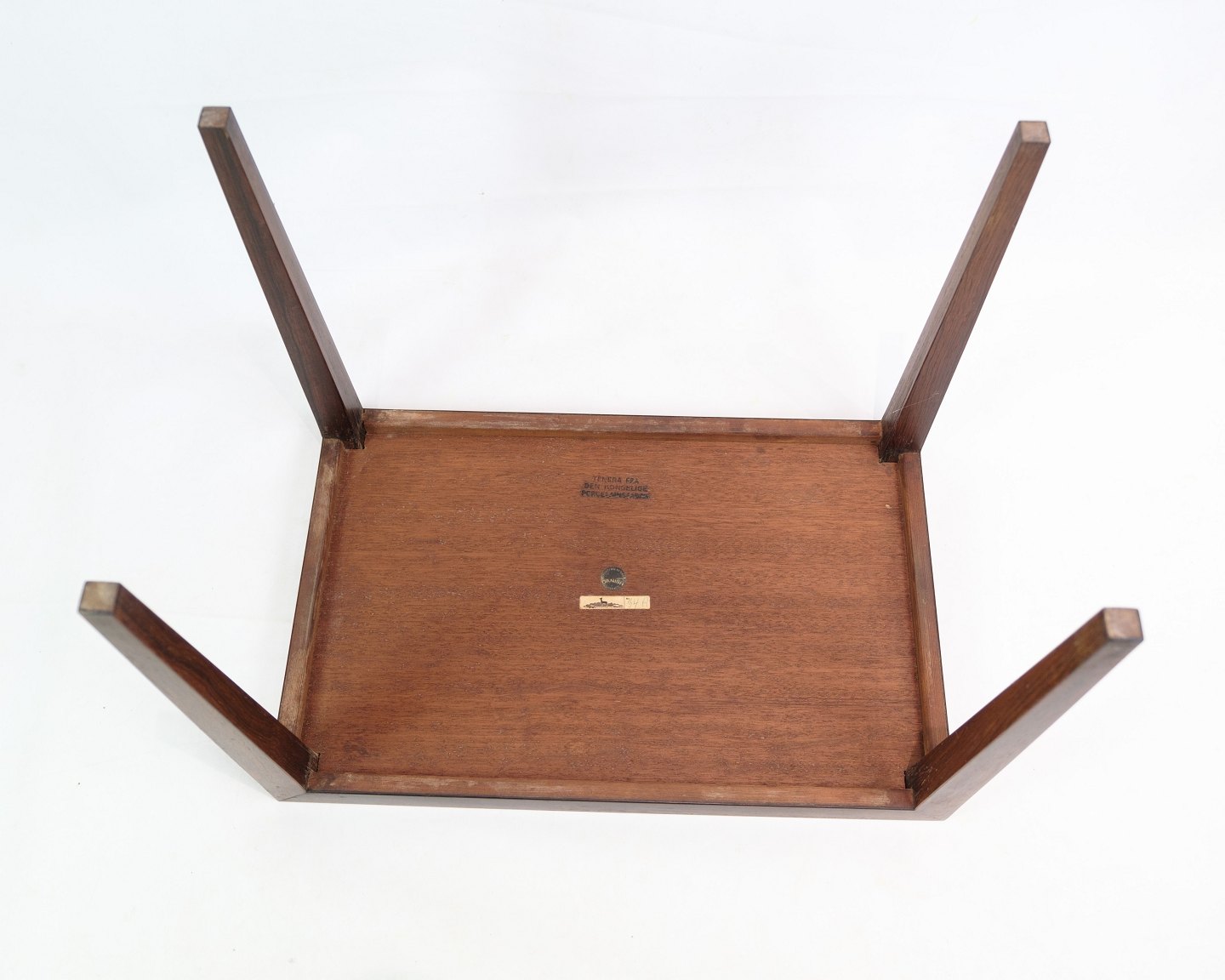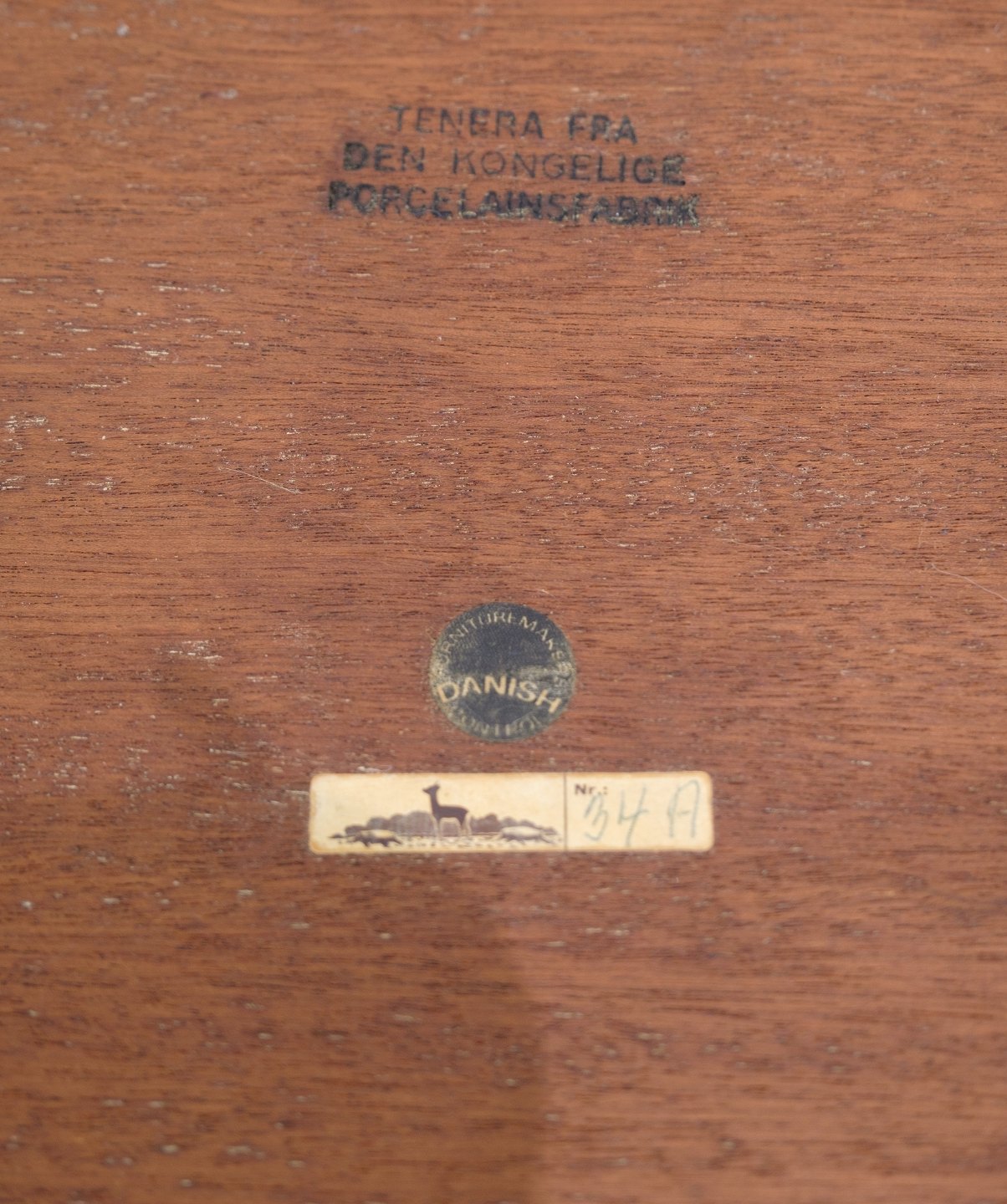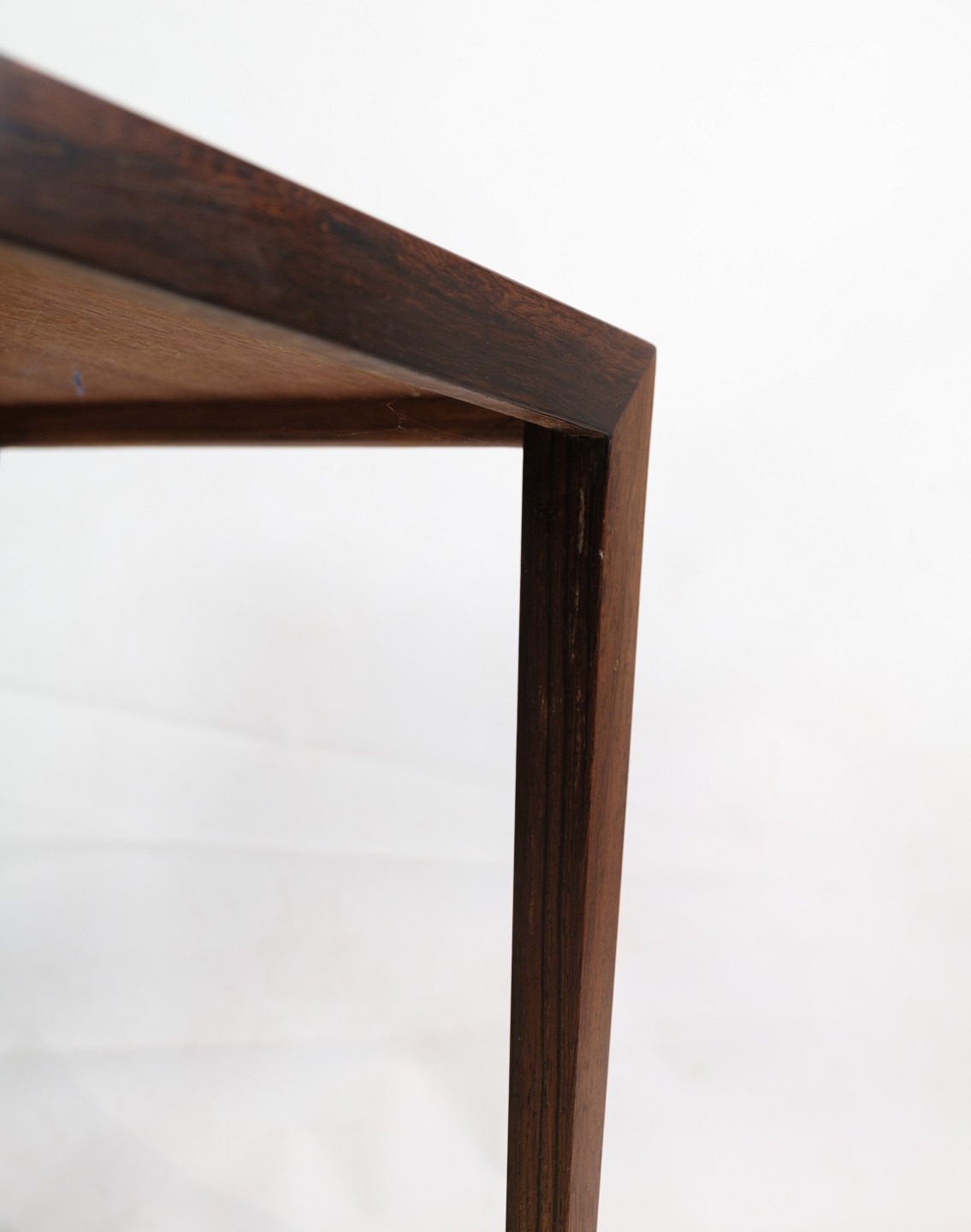 Sæt af sideborde, model 34A, i palisander designet af Severin Hansen med fliser fra Den Kongelige Porcelænsfabrik, produceret omkring 1960'erne. Disse sideborde repræsenterer en smuk kombination af kvalitetsmaterialer og dansk designarv. Palisandertræet giver en varm og luksuriøs fornemmelse, mens fliserne fra Den Kongelige Porcelænsfabrik tilføjer et strejf af elegance. Dette møbel er ikke blot funktionelt, men også et tidstypisk kunstværk, der udtrykker designet fra den æra. Et enestående samlerobjekt for dem, der værdsætter vintage møbelkunst og dansk designhistorie.