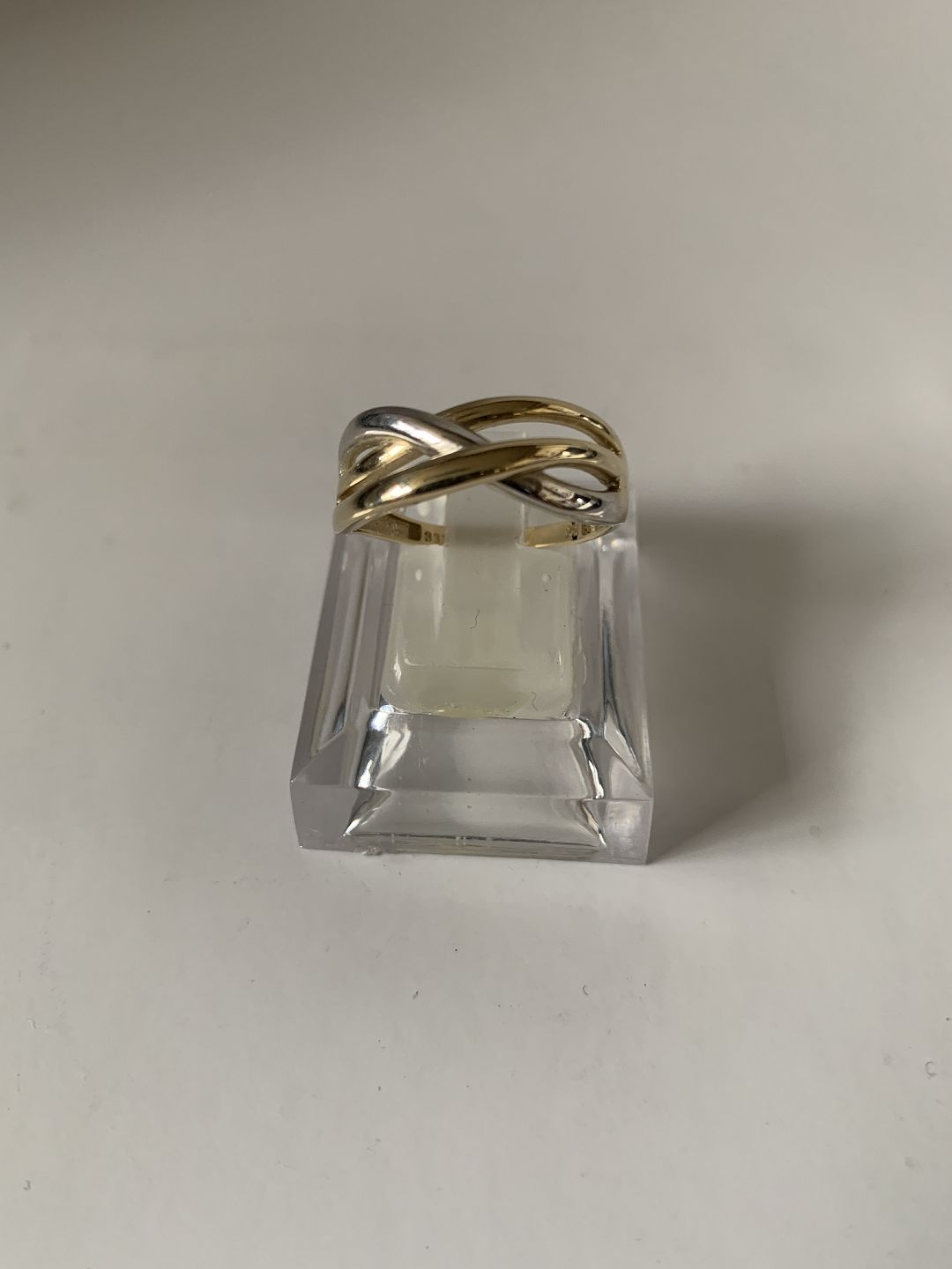 Beautiful women's ring with soft shapes and elegant dynamics in the interplay between red and white gold. The ring is made in a minimalist look, which makes the ring ideal for an everyday ring. The beautiful strings in red and white gold are woven into each other and give the ring great life.