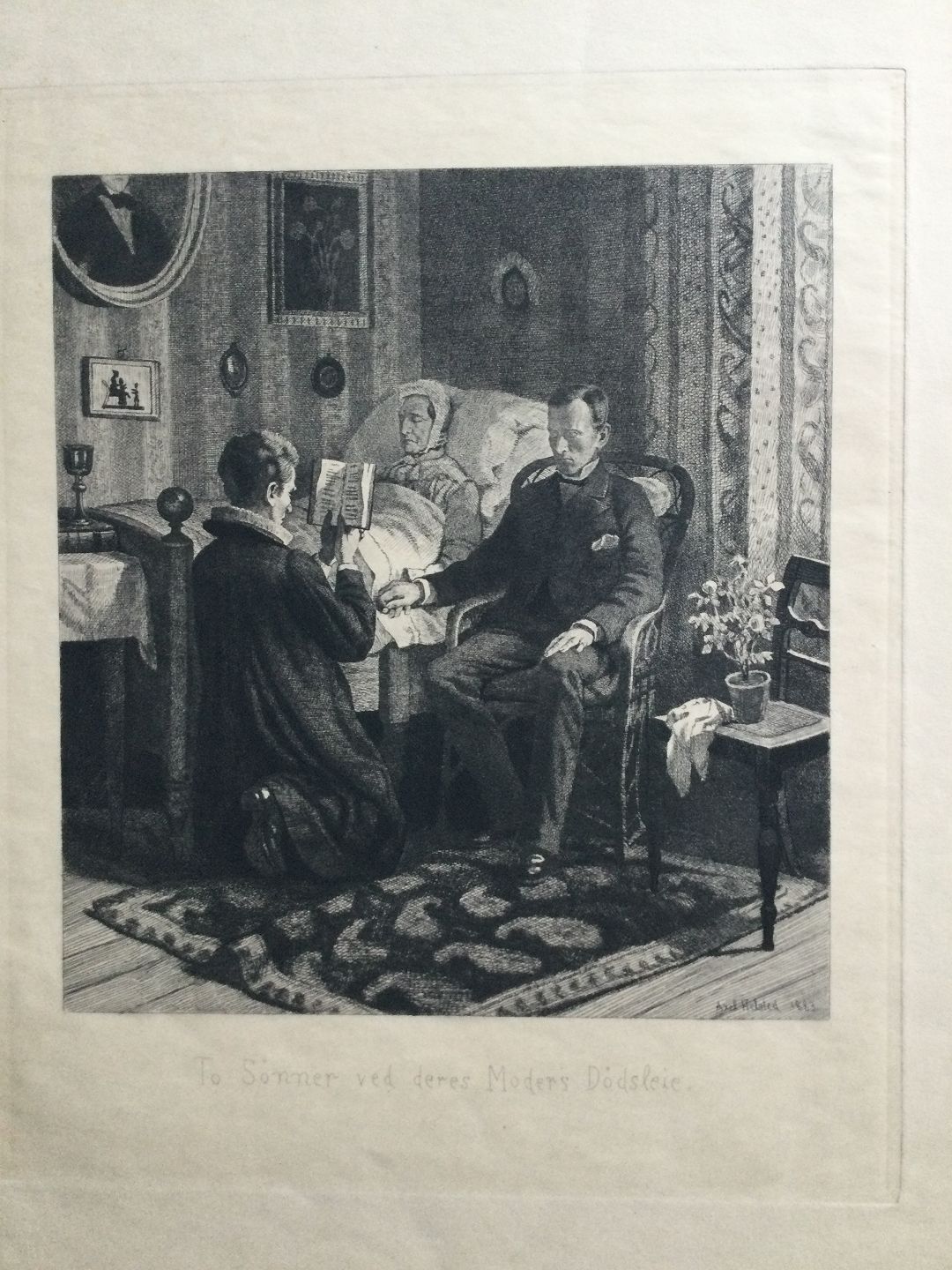 Betegnet - " To Sønner ved deres Moders Dødsleie"