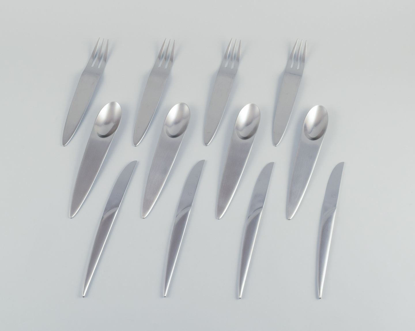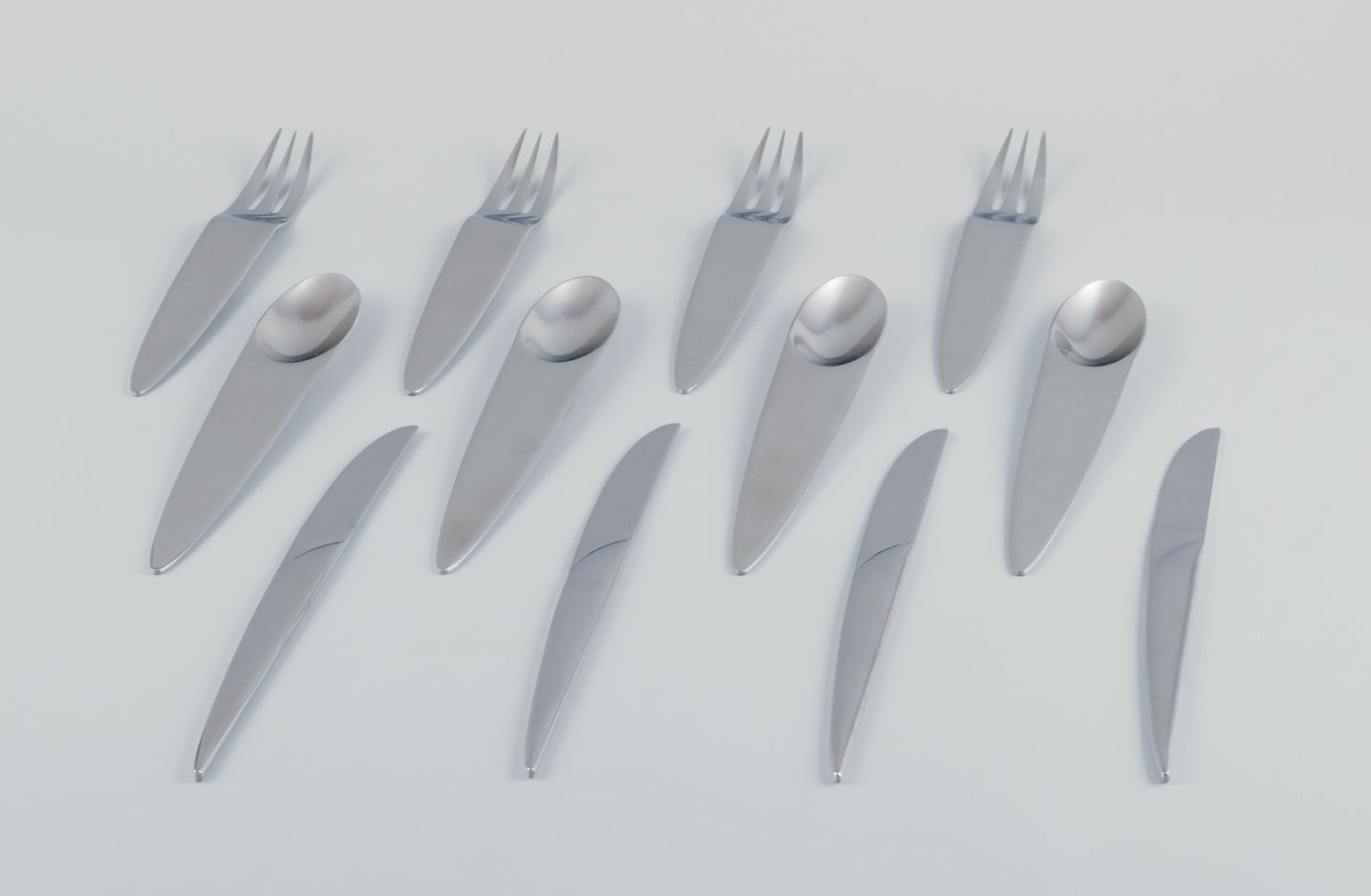 Dinner service for four people, consisting of four dinner knives, four dinner forks, and four dinner spoons.