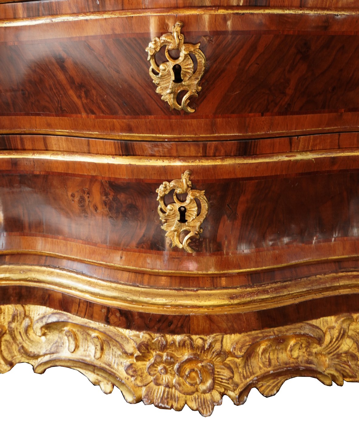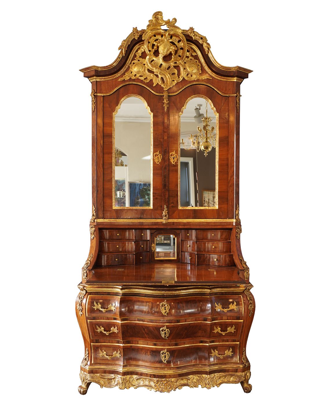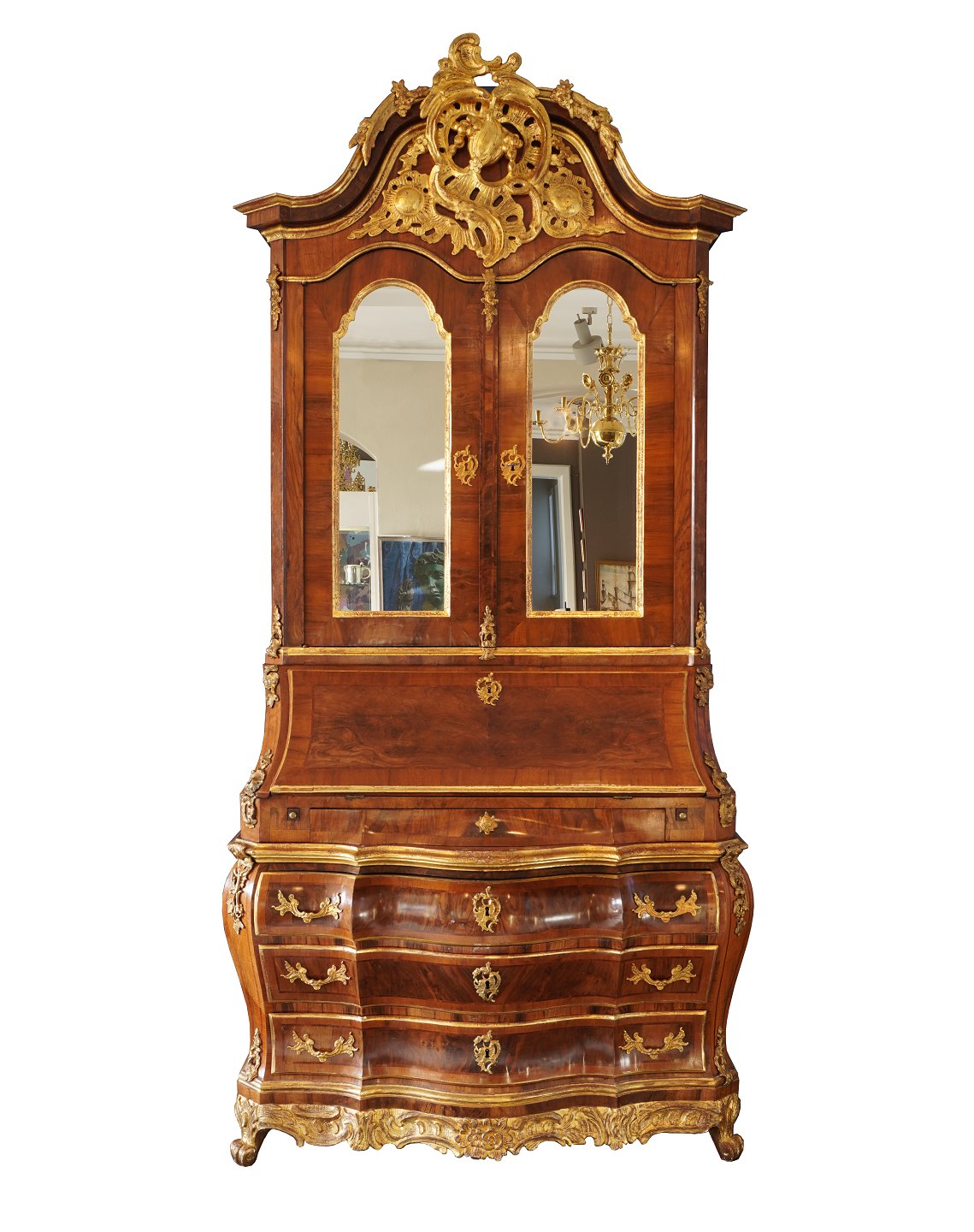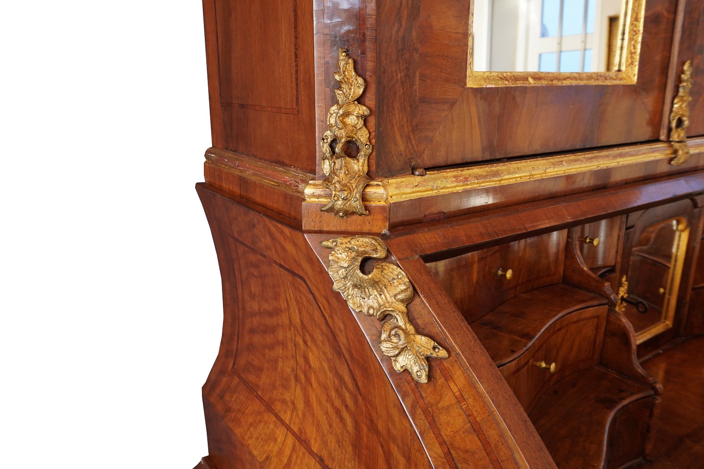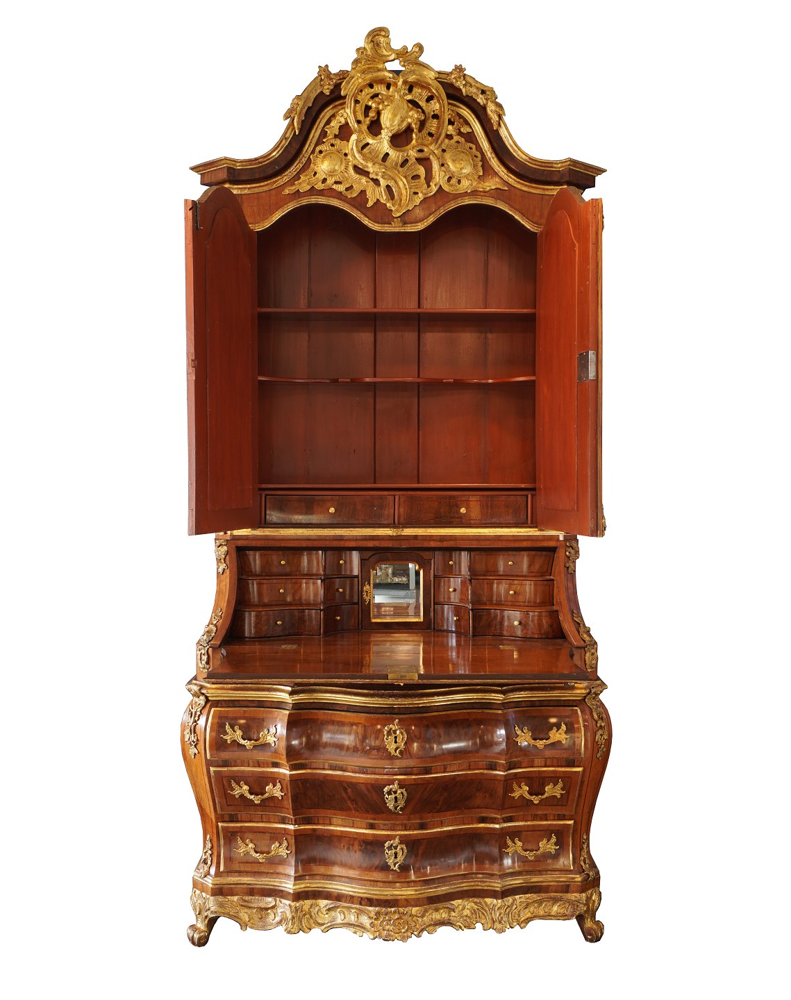 Nøddetræ med forgyldninger og prydet med talrige skæringer