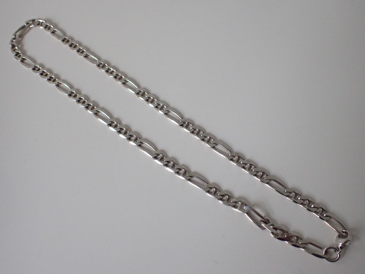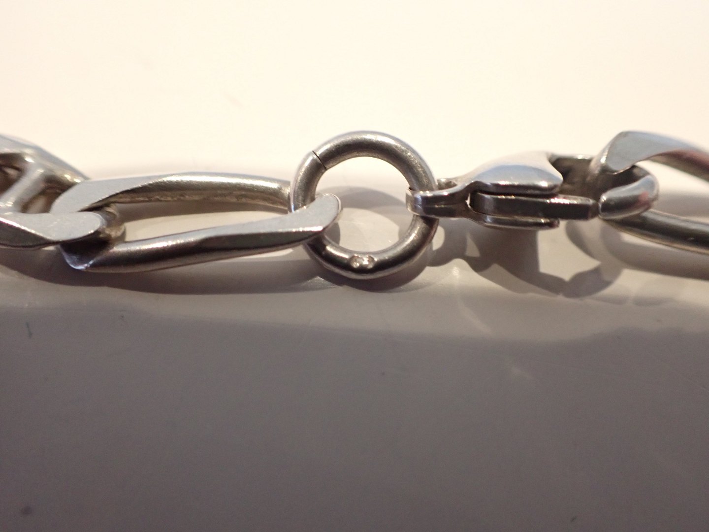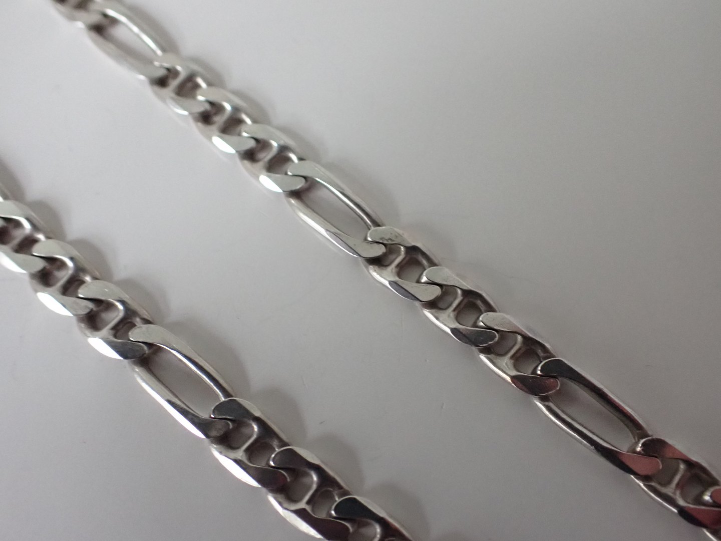 Kraftig Figaroæde i sterling sølv. Dansk. Ca. 1950. Længde: 51 cm. Ledbredde: 0,6 cm. Vægt: 32 gram. I pæn stand med let brugsslid.