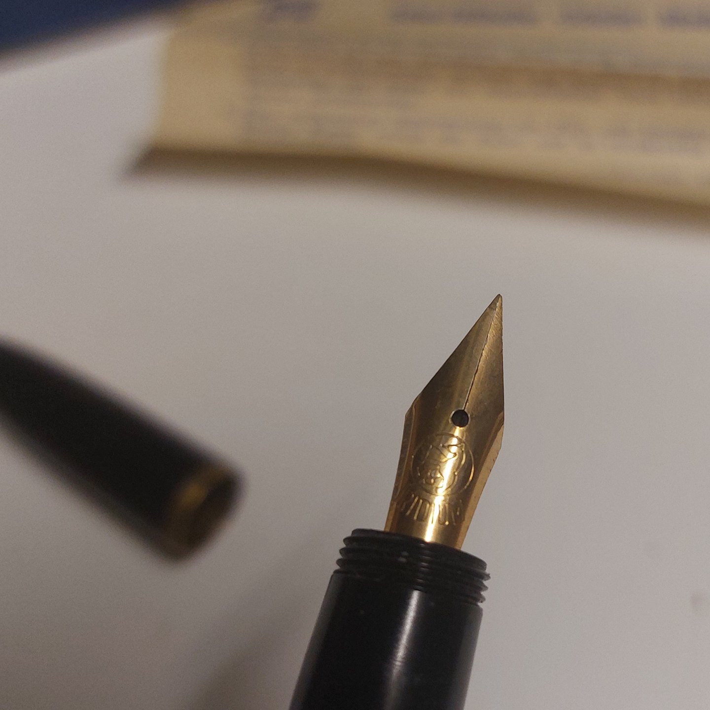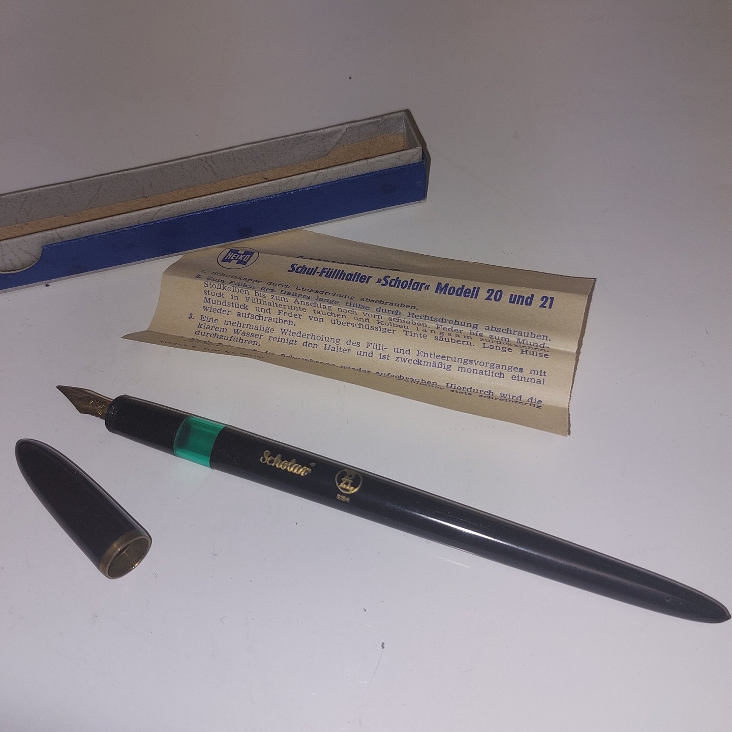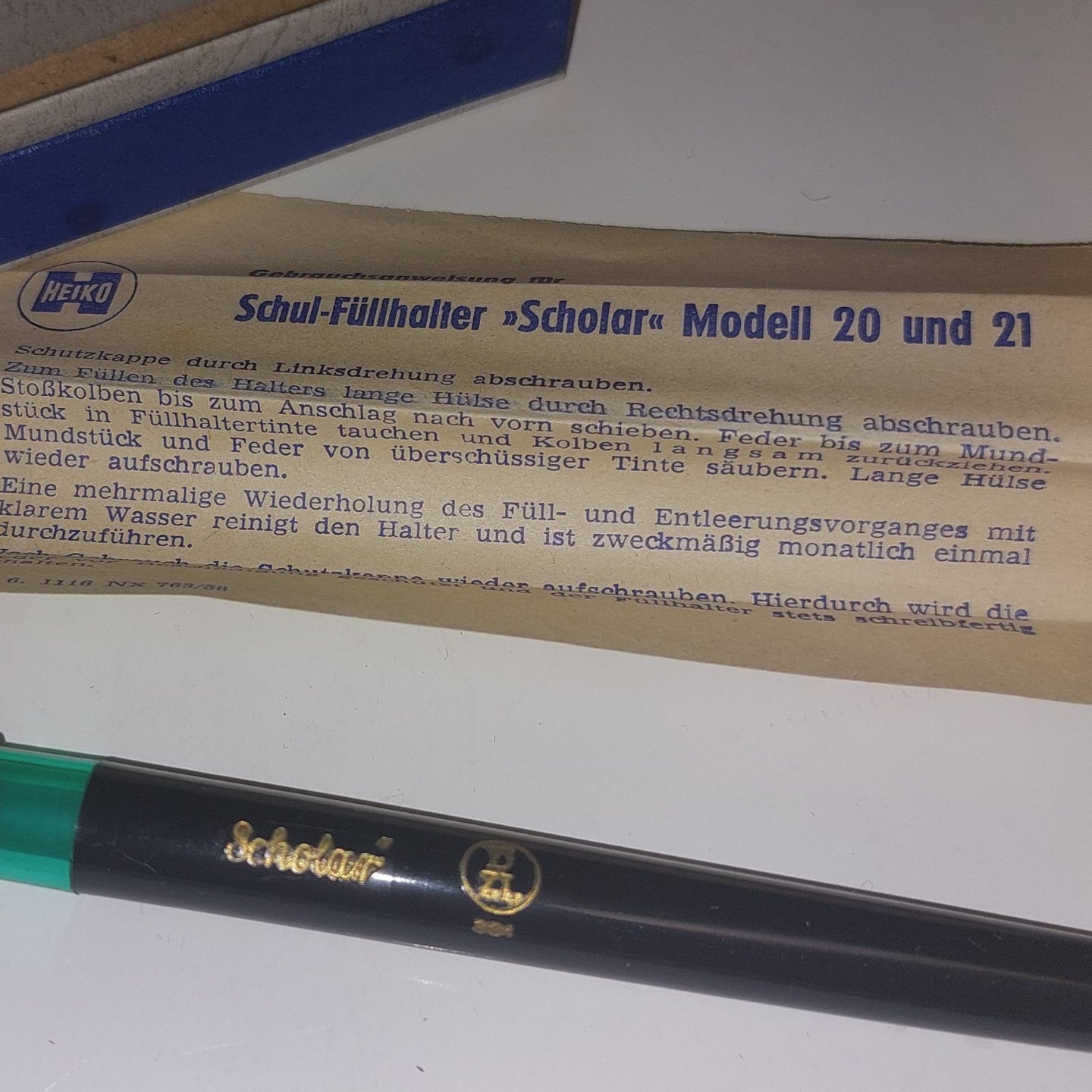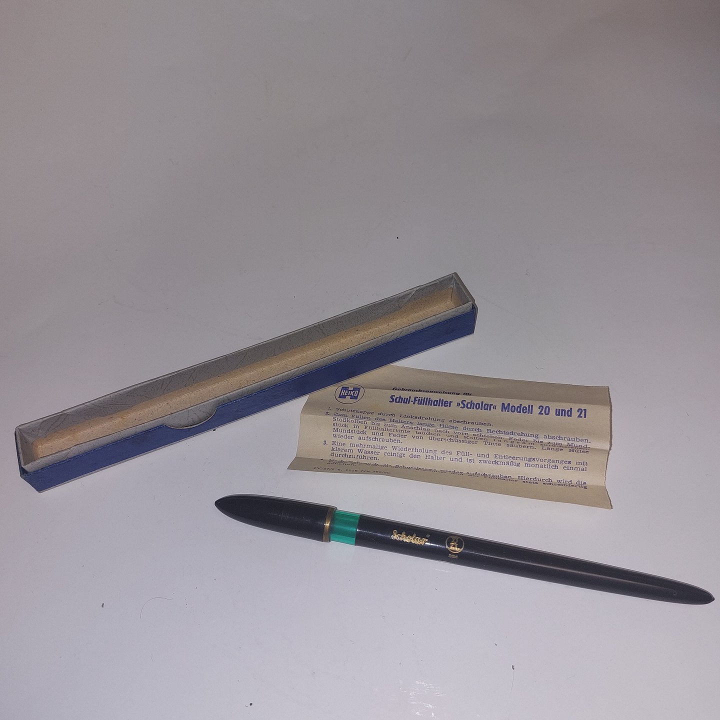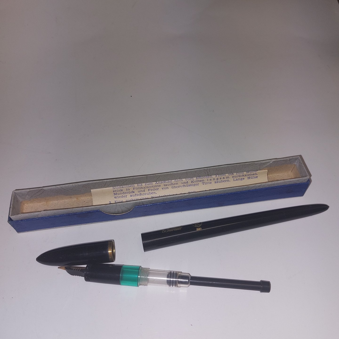 NEVER USED: Black Heiko fountain pen from GDR..The original box and instruction sheet included. As new ! The fountain pen is 17.5 cm long.