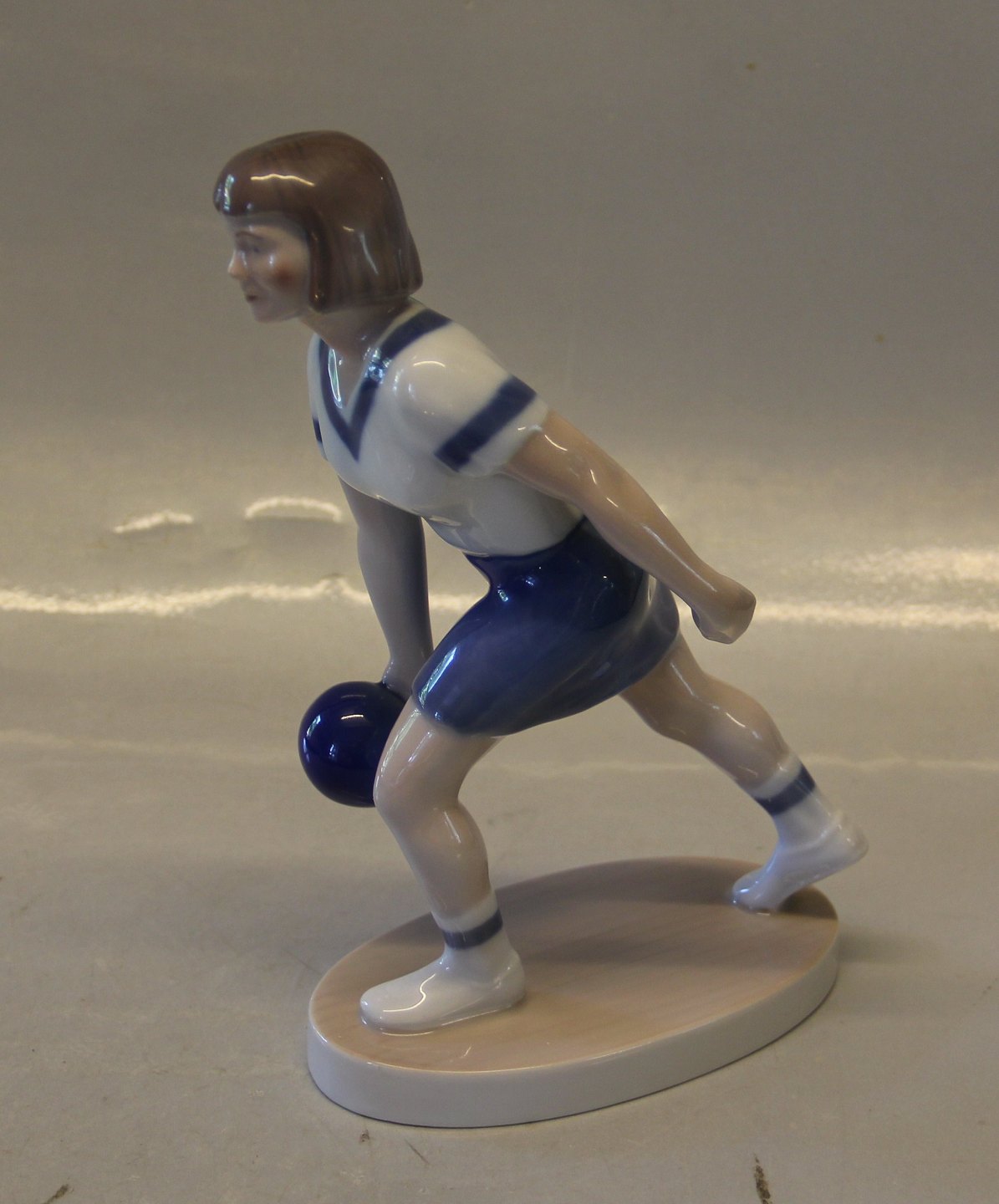 Bing and Grondahl B&G 2487 Girl Bowling 20 cm Marked with the three Royal Towers of Copenhagen. In mint and nice condition