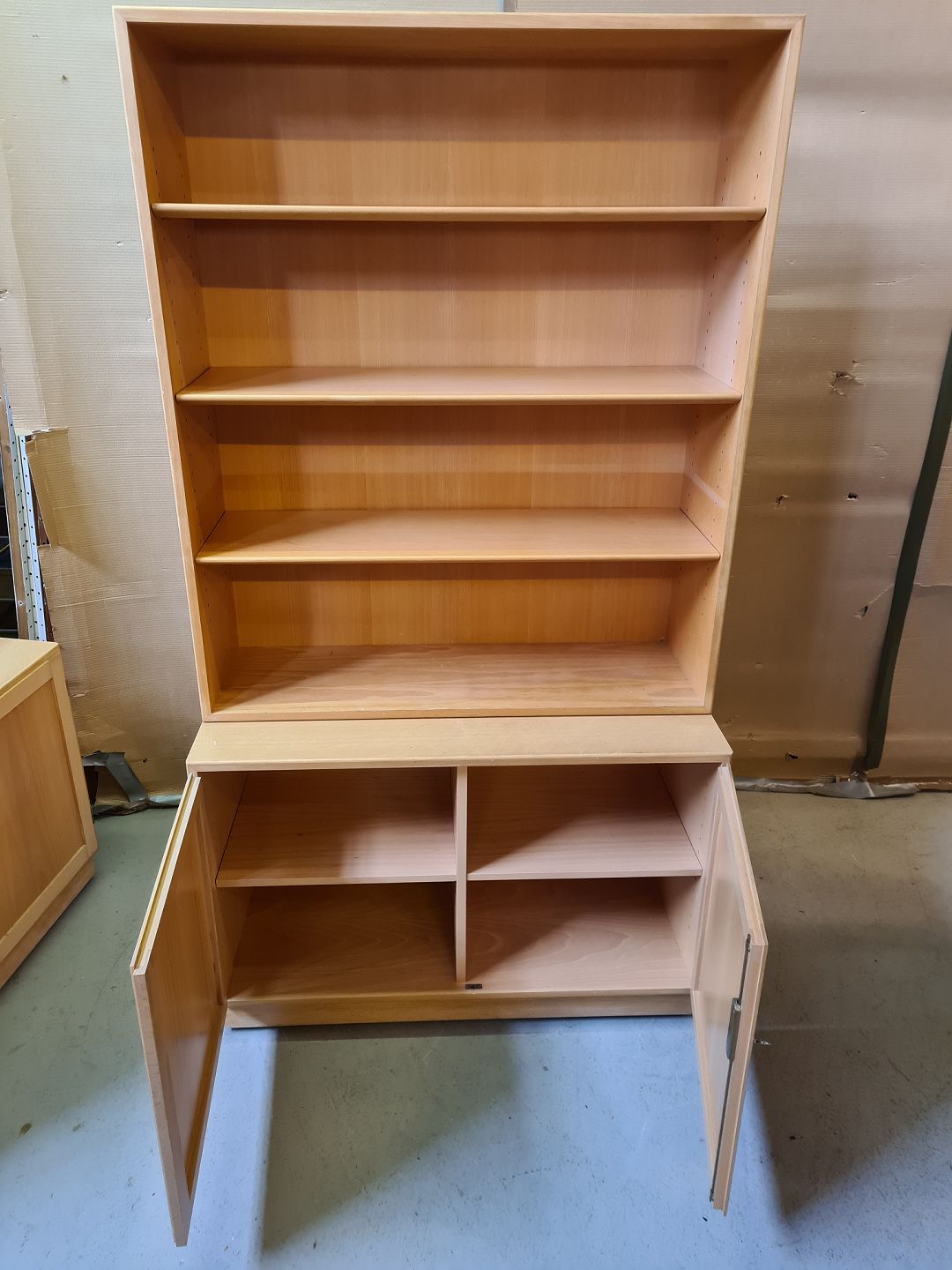 Reolsektion fra Søborg Møbler i fineret og lakeret bøgetræ, fra 1980erne.