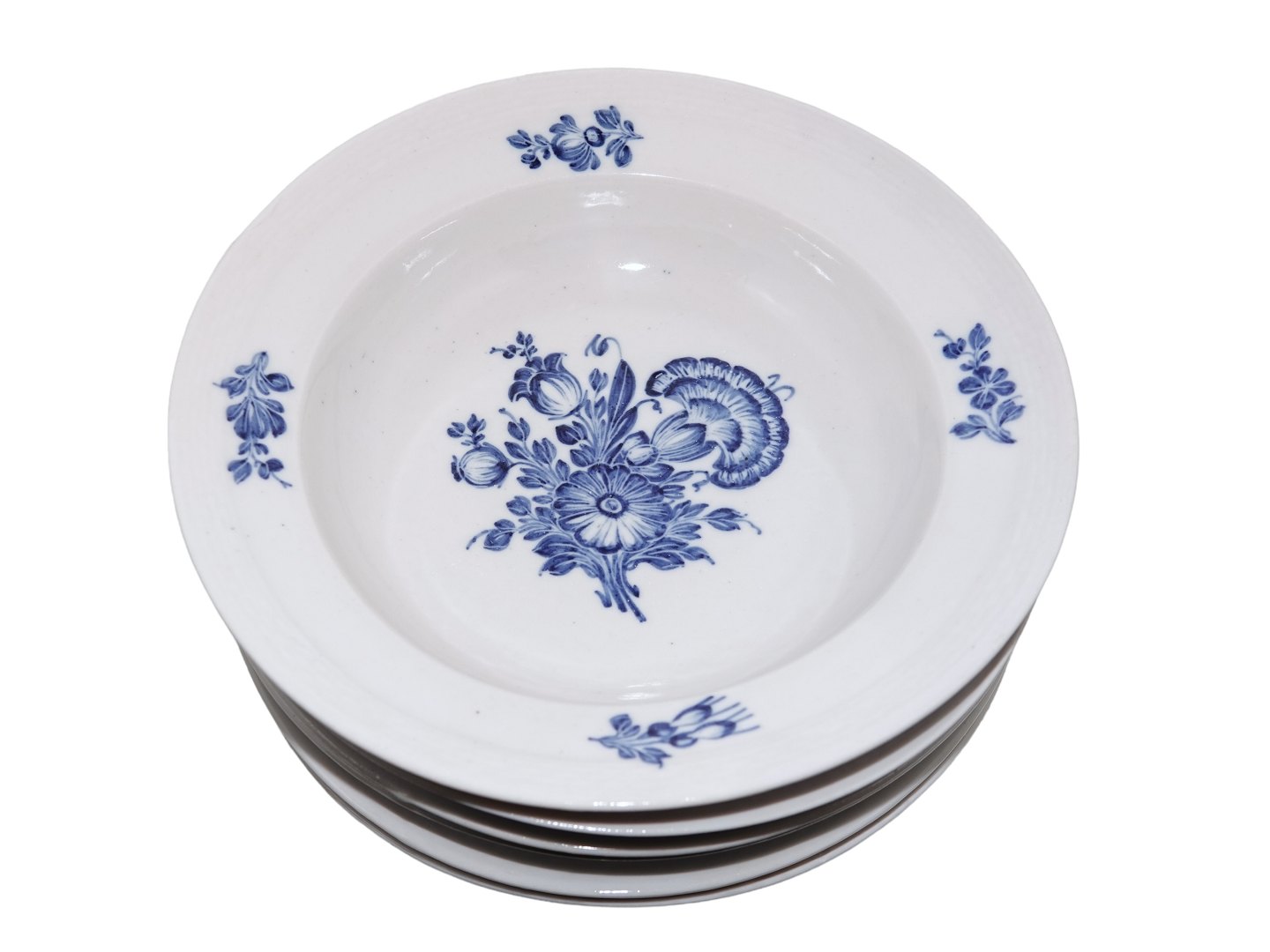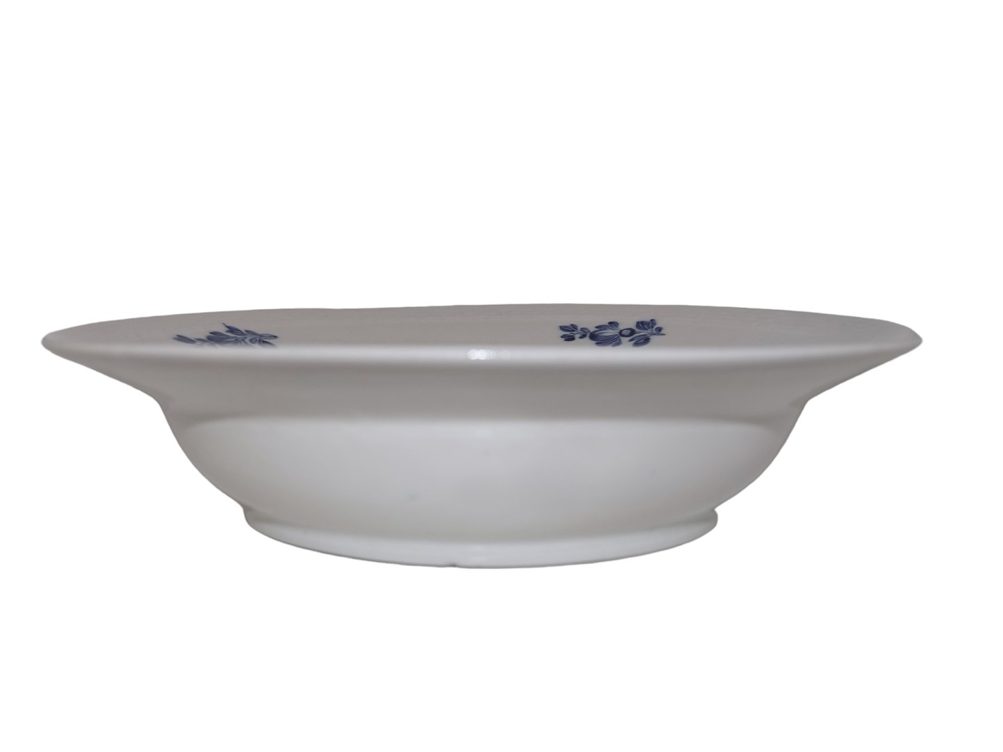 Royal Copenhagen Blå Blomst Flettet, tidlig lille ekstra dyb tallerken i svagt gråligt porcelæn.