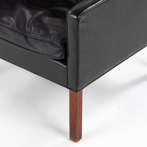 BM 2207 - Lænestol i patineret sort læder og ben i teak.