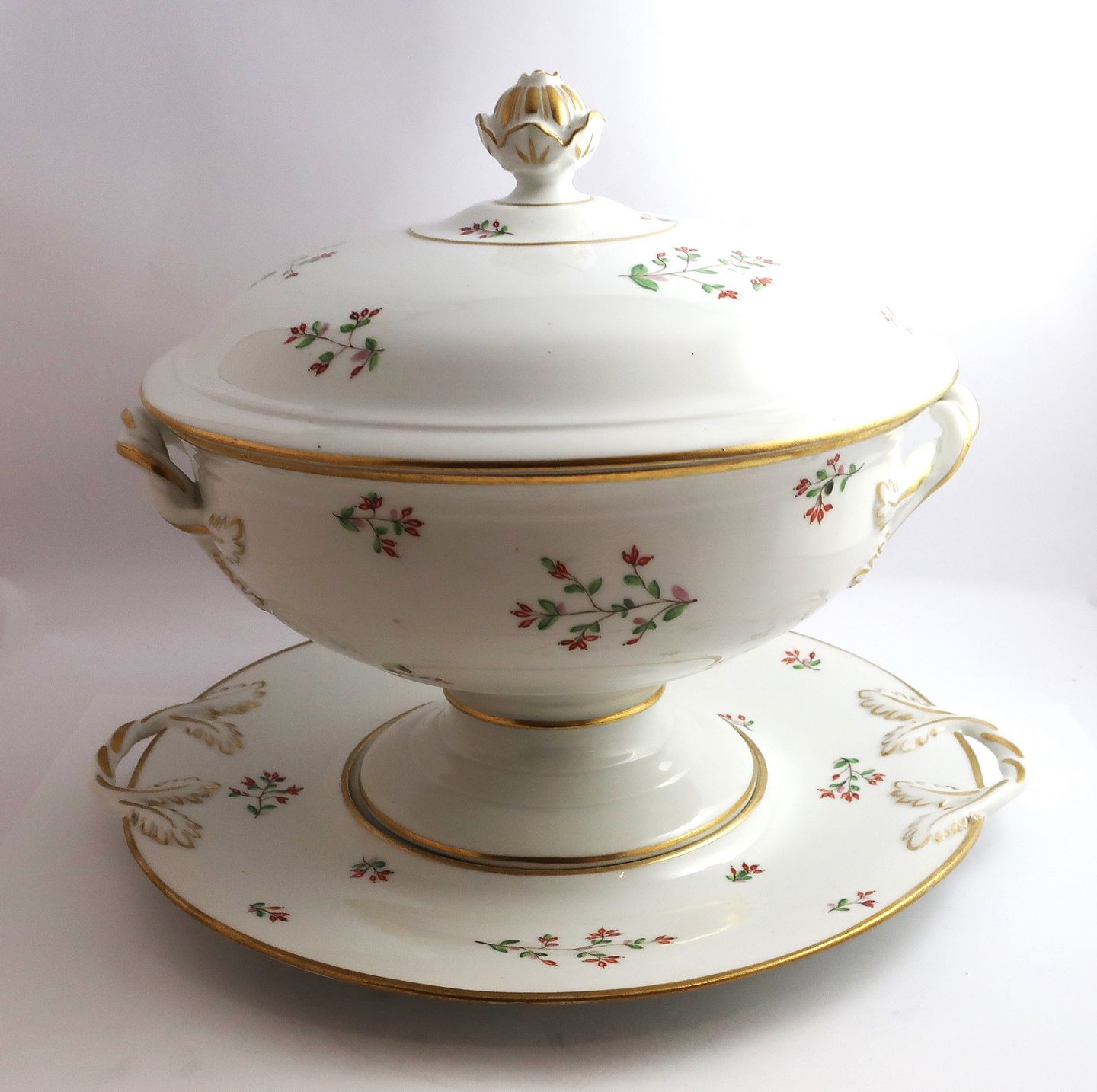 Røde bær (berberis). Royal Copenhagen. Stel no. 84. Terrin med underfad. Model 84/9032. Højde 28 cm. Produceret før 1890. (2 sortering)