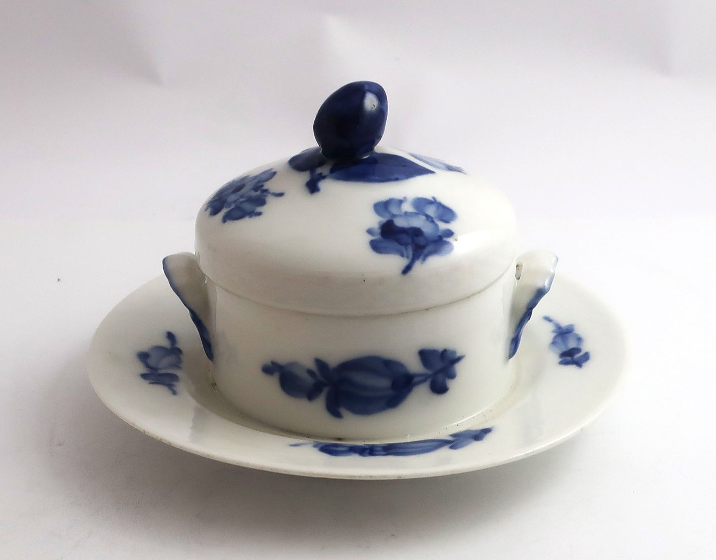 Royal Copenhagen. Blå blomst, flettet. Smørskål. Model 8075. Højde 8 cm. (2 sortering)