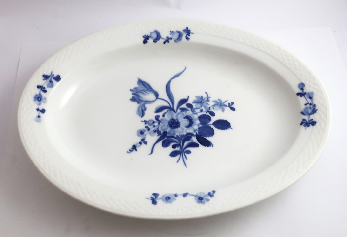 Royal Copenhagen. Blå blomst, flettet. Ovalt fad. Model 8016. Længde 34 cm. Bredde 25,5 cm. (2 sortering). Produceret før 1923.