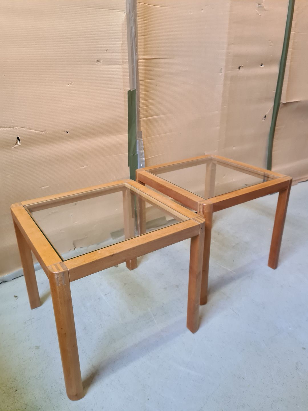 2 Lampeborde i massivt mahogni med glasplade, fra 2000erne.