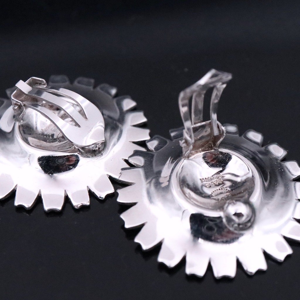 Georg Jensen Marguerit / Daisy øreklips i sterlingsølv med emalje - 33mm.