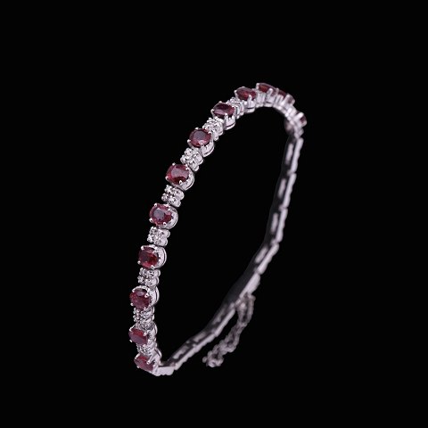 Armbånd i 14k hvidguld med Rubiner og brillanter.