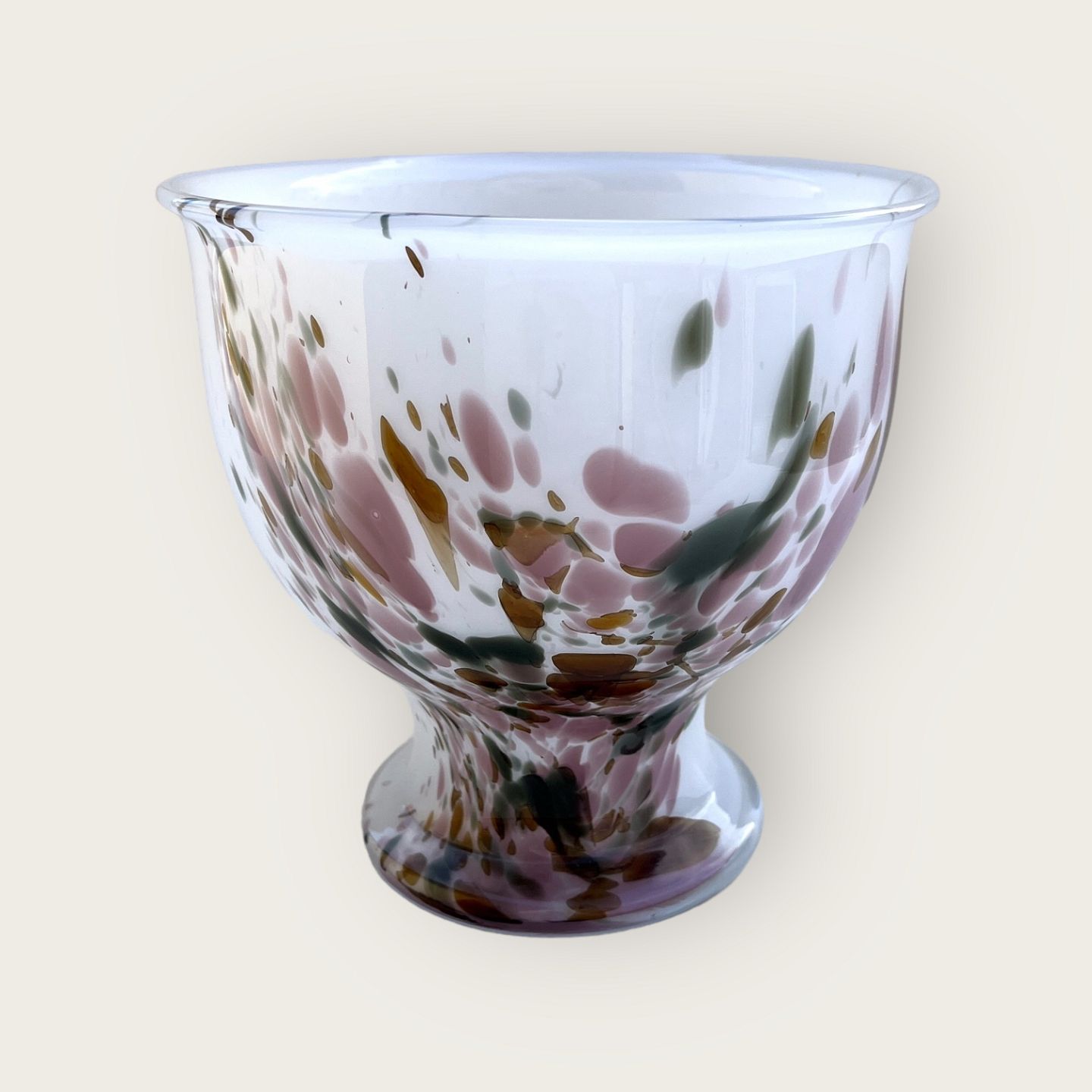 | Holmegaard, Cascade, Vase, Opalglas med drejet pletter og striber, 18cm i diameter, 17,5cm høj, Design Per Lütken *Perfekt stand*