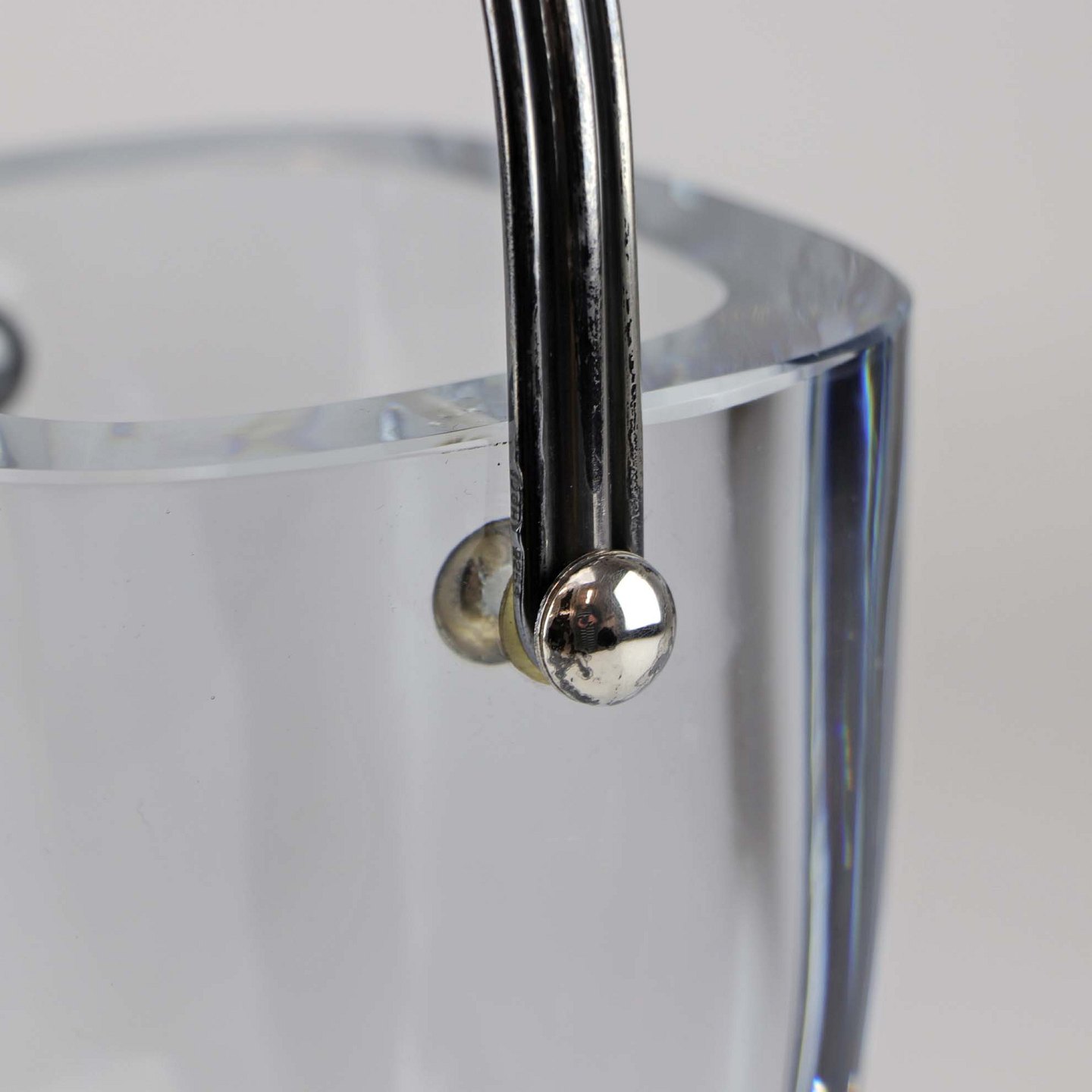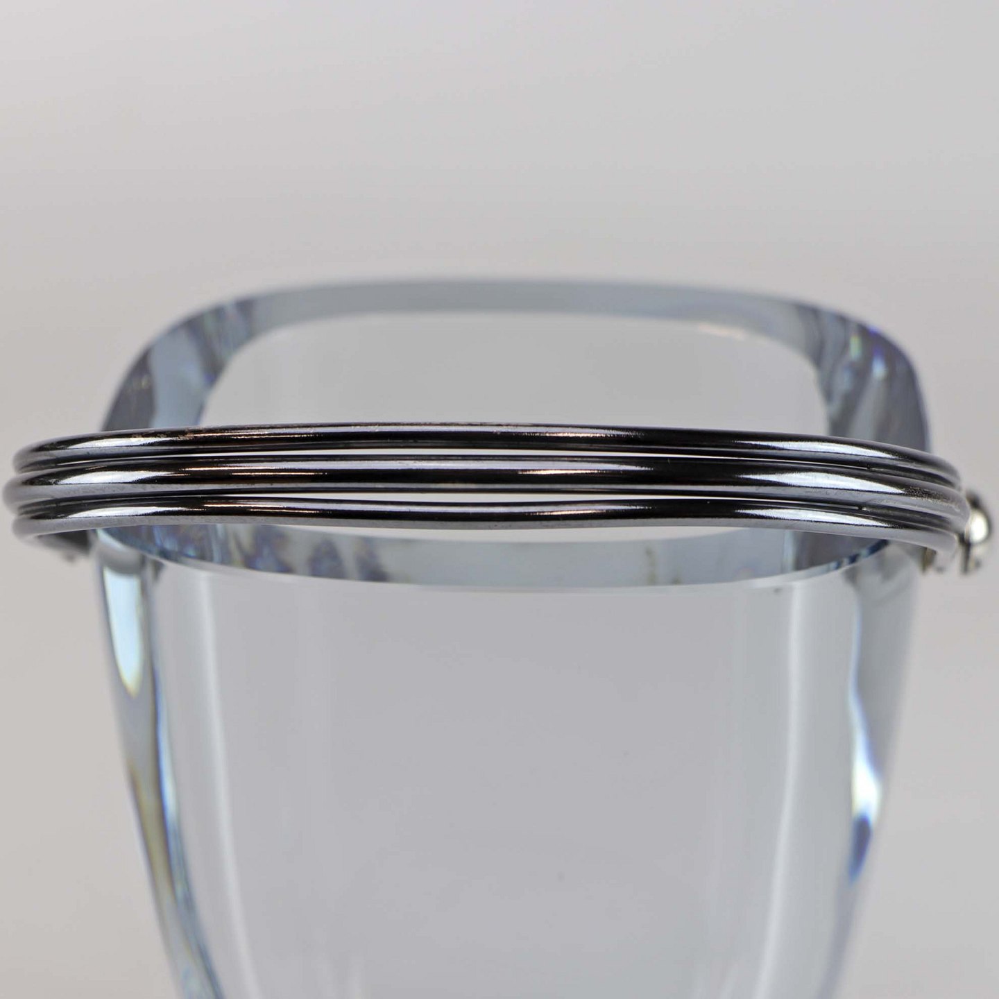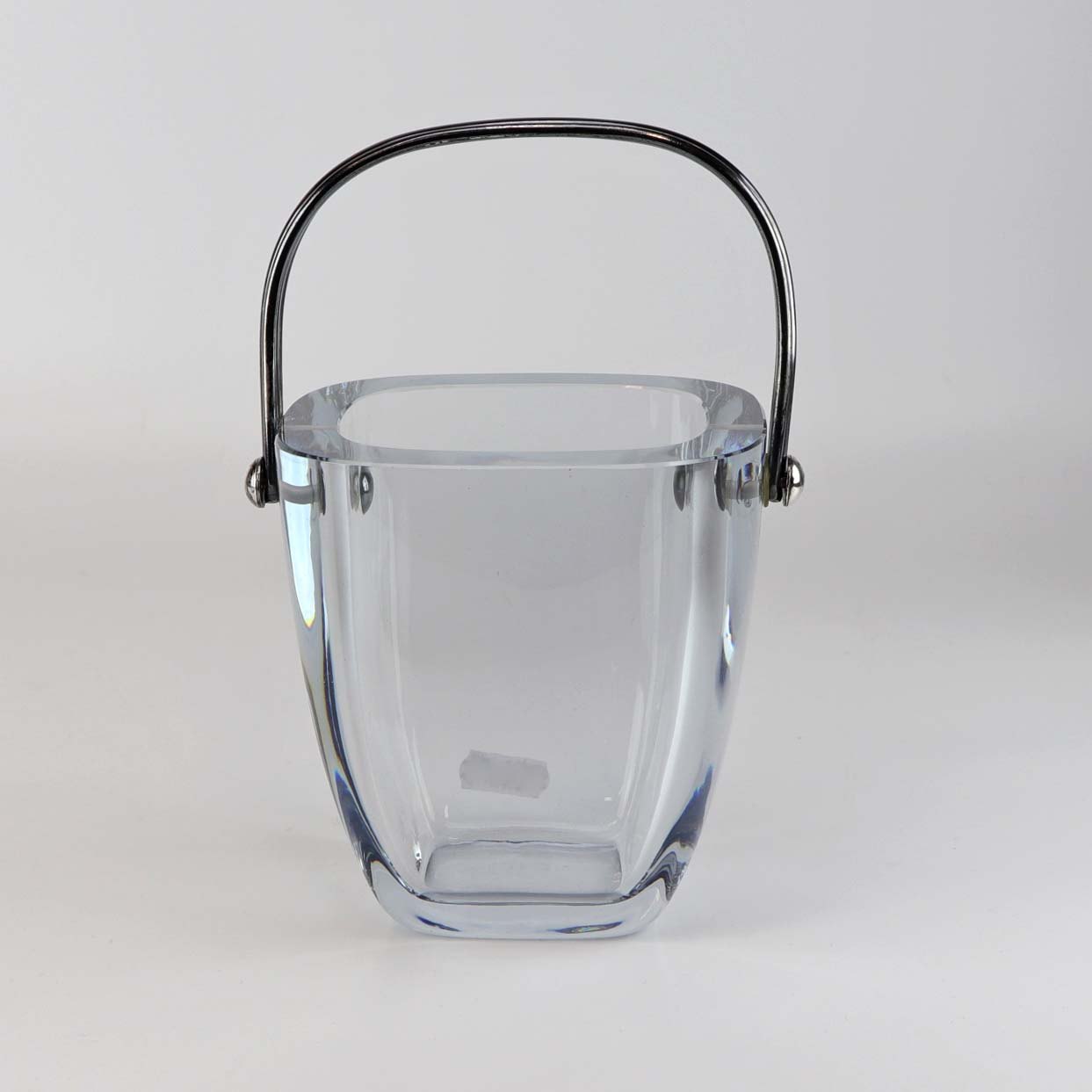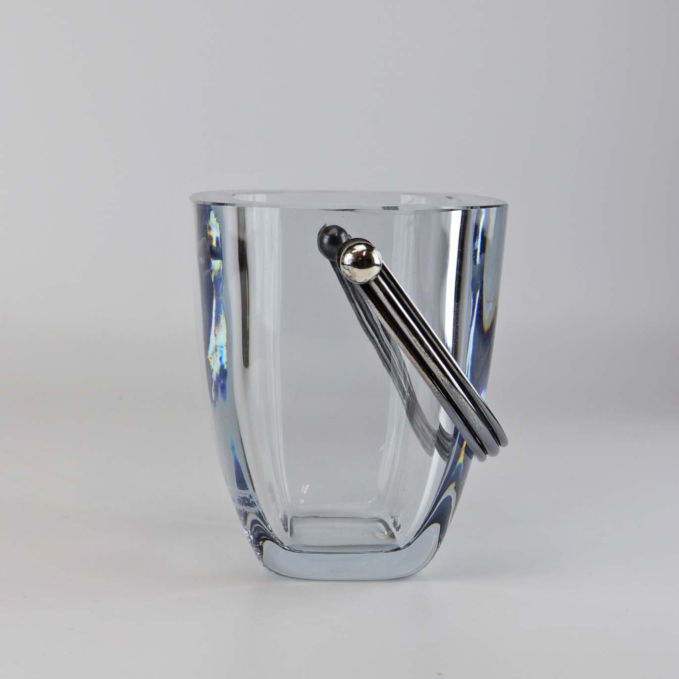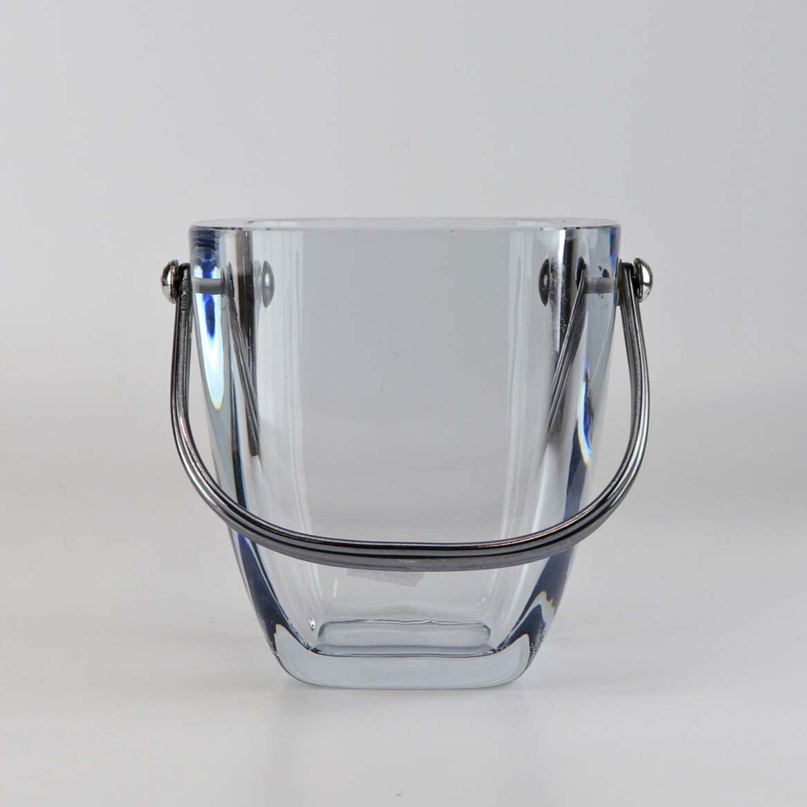 Isspand i klart lyseblåt glas med sølvhank