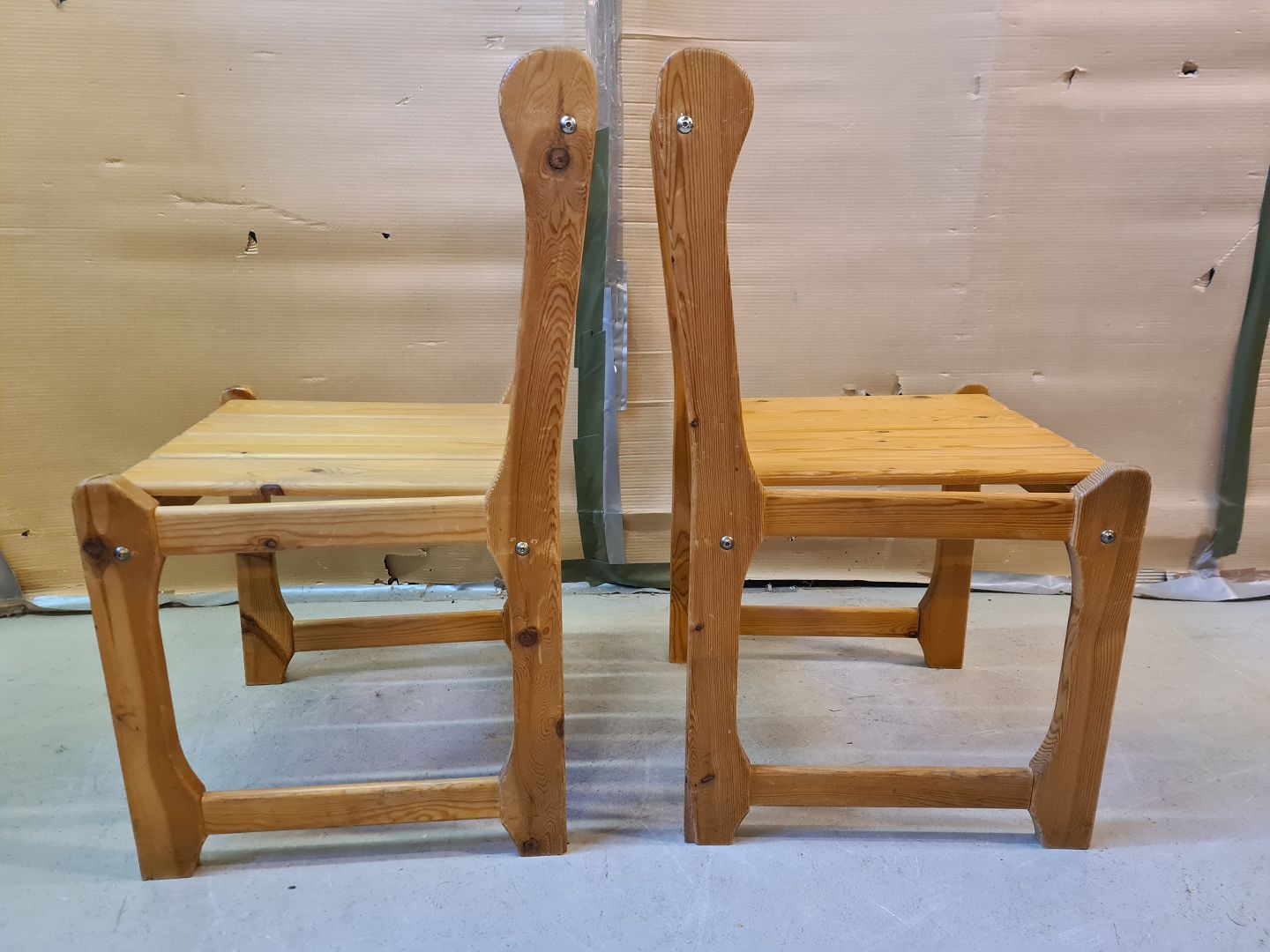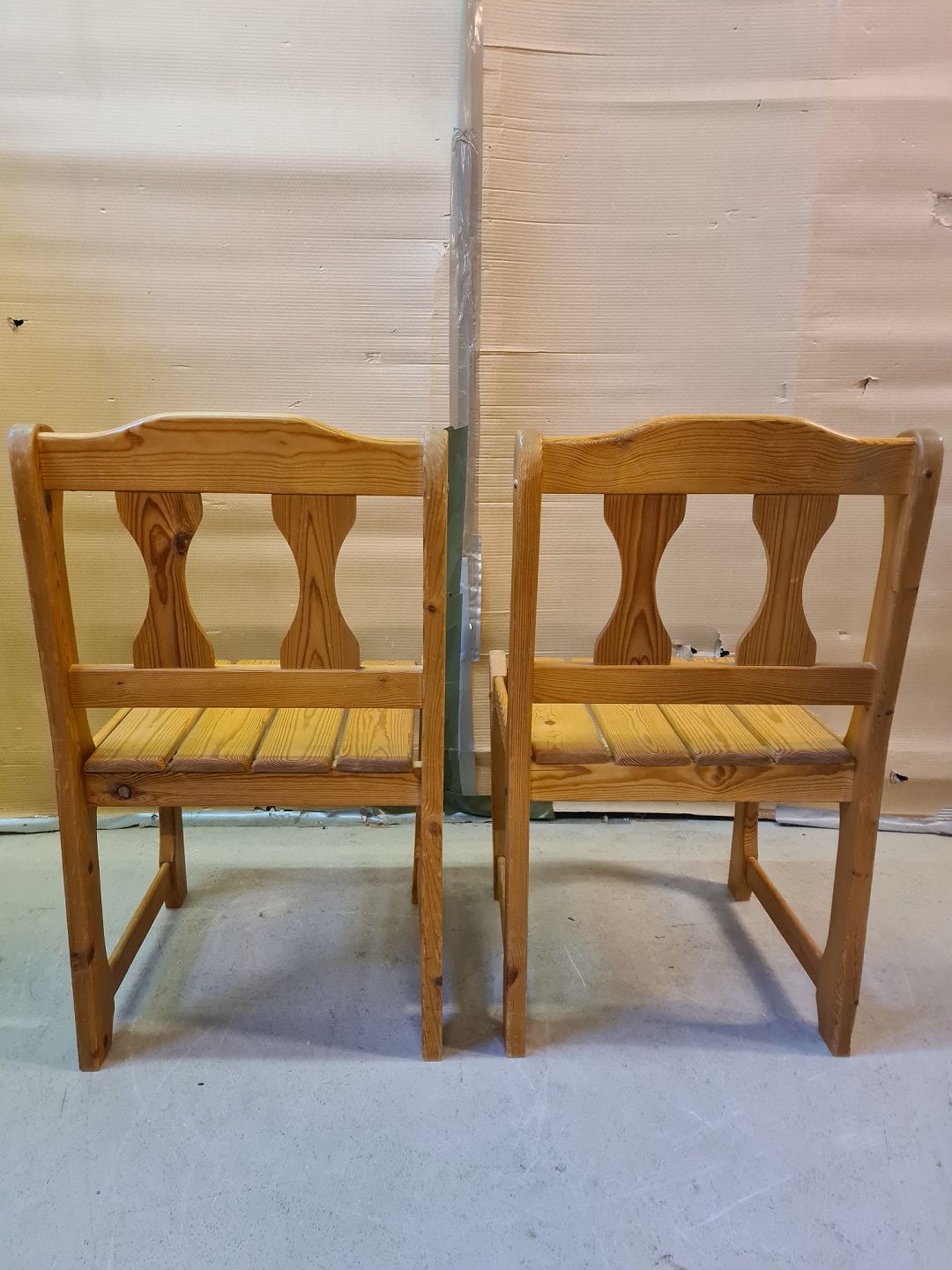 2 Stole i massivt fyrretræ, fra 1980erne.