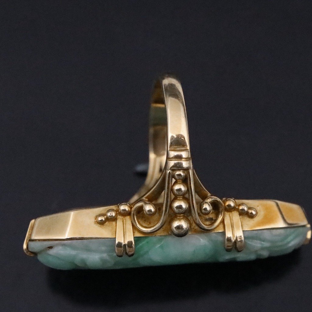 Thorvald Nielsen Meier. Skønvirke Ring i 14k guld med jade.