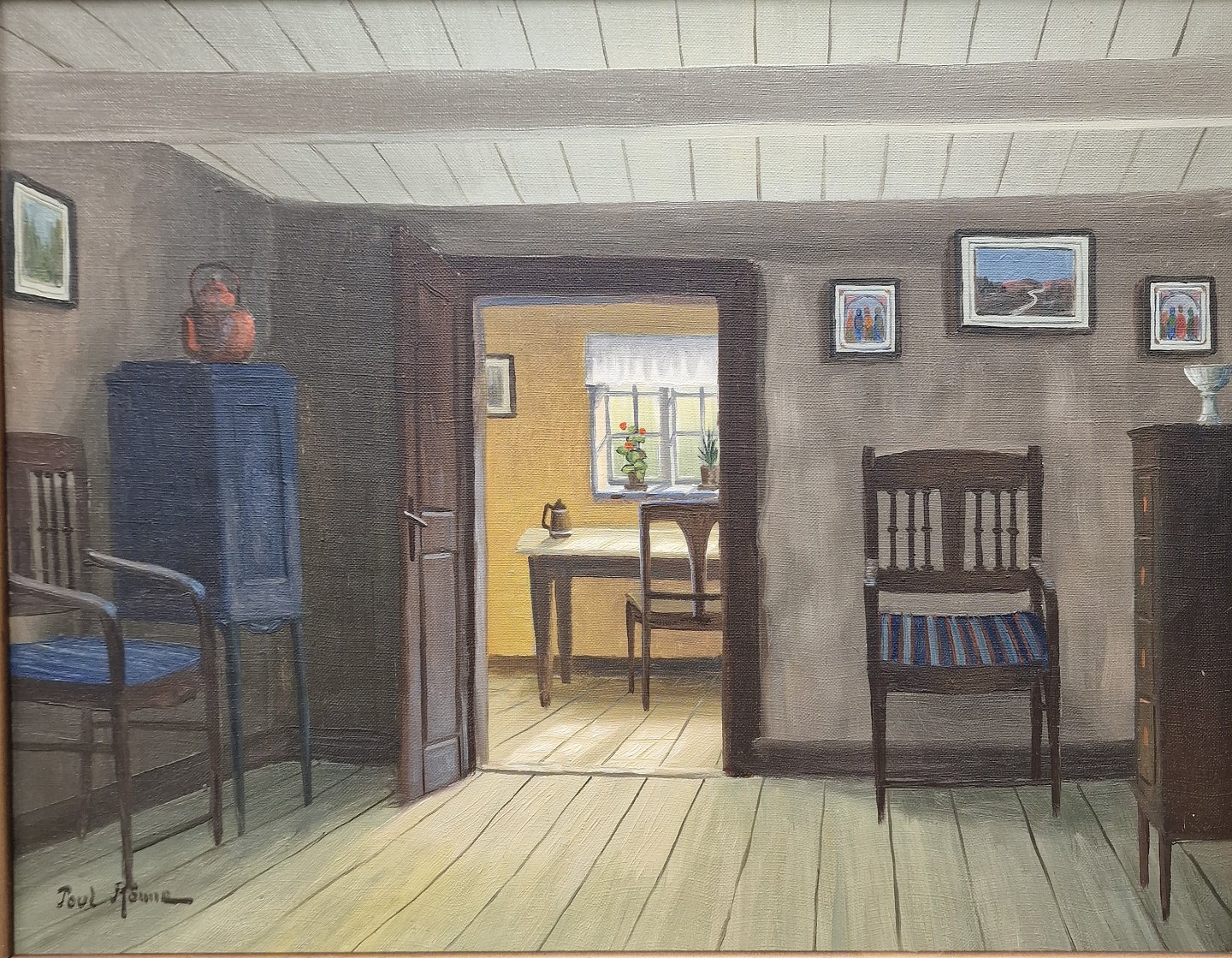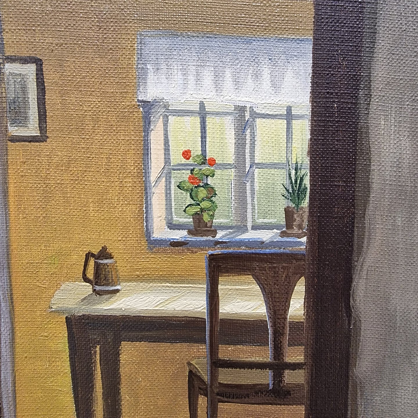 Maleri af akrylmaling på lærred, med motiv af interiør
