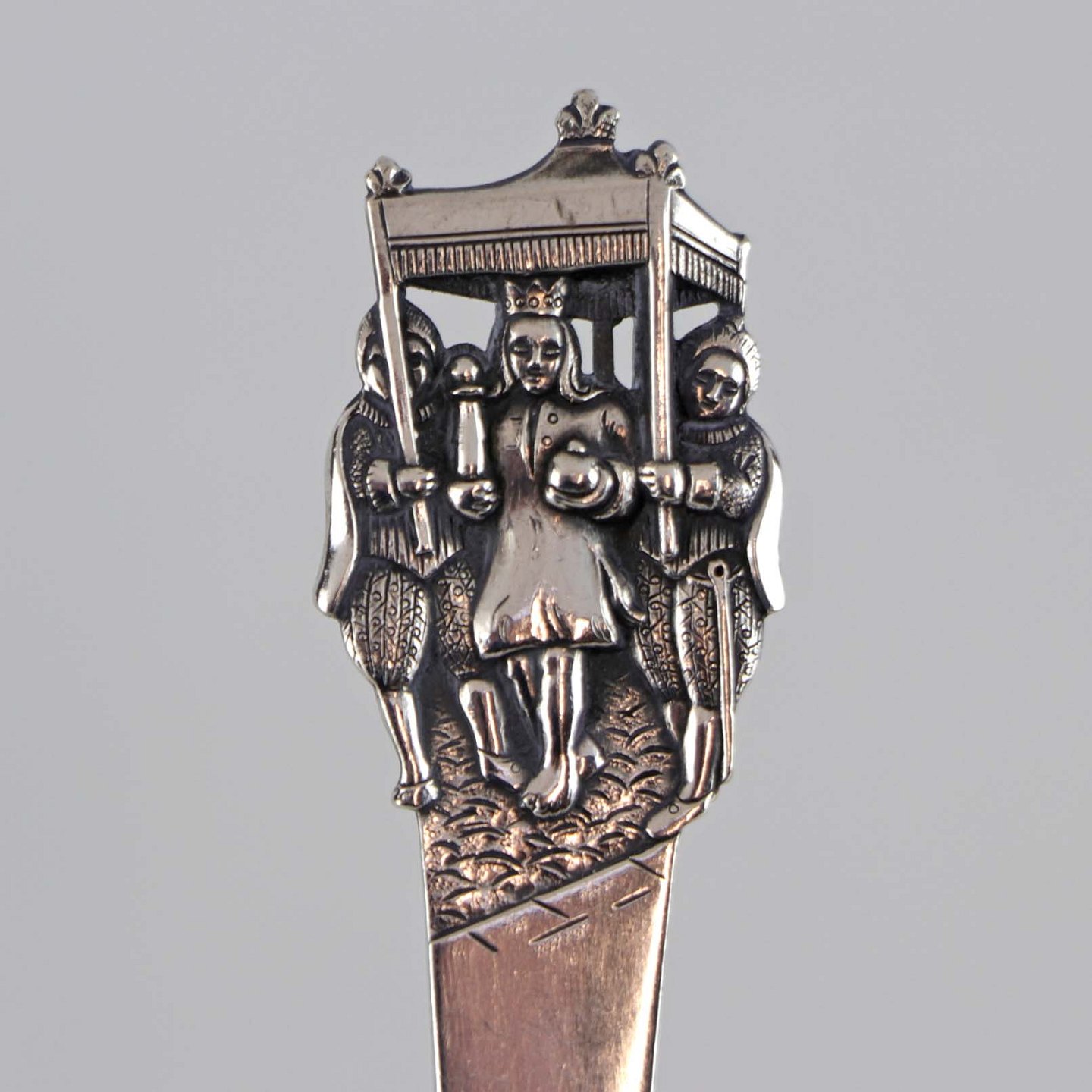 Barneske i tre tårnet sølv med motiv fra H. C. Andersens eventyret Kejserens nye klæder