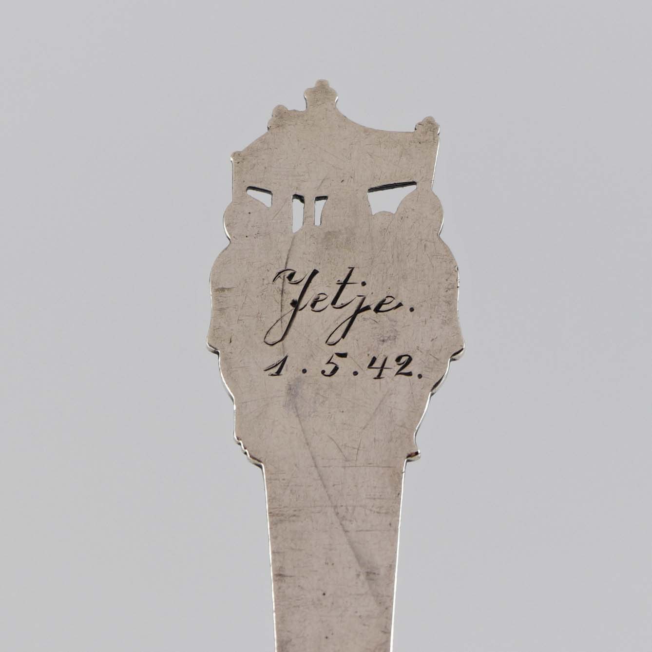 Gravering på bagsiden Jetje 1.5.42
