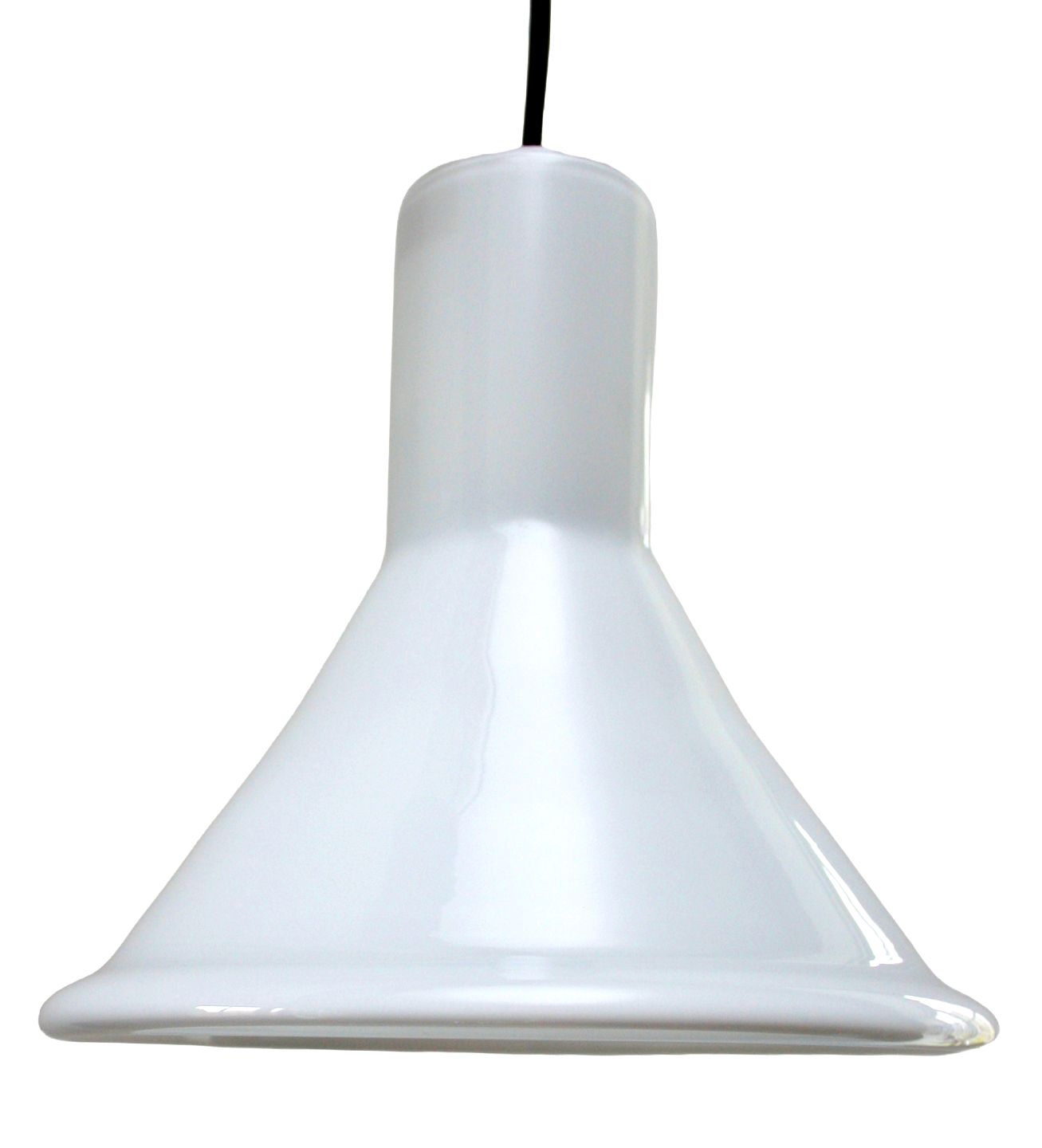 Holmegaard, P&T pendel, hvid med sort ledning, Type mini. Højde 21 cm. Diameter 21 cm. Pris: 650 kr.