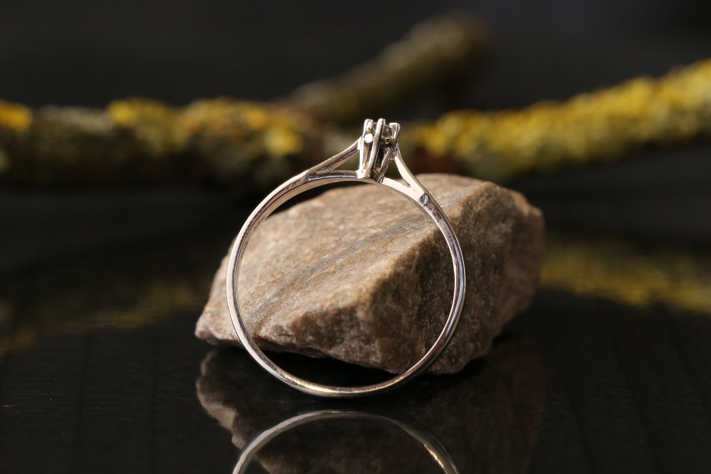 Women's ring with brilliant in 14 carat white gold, size 58, stamped CAB