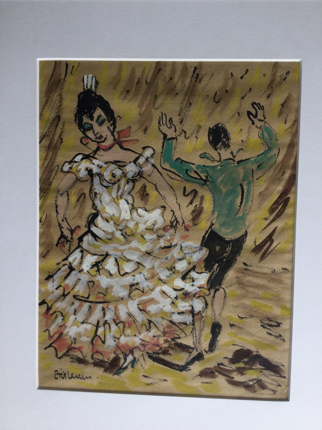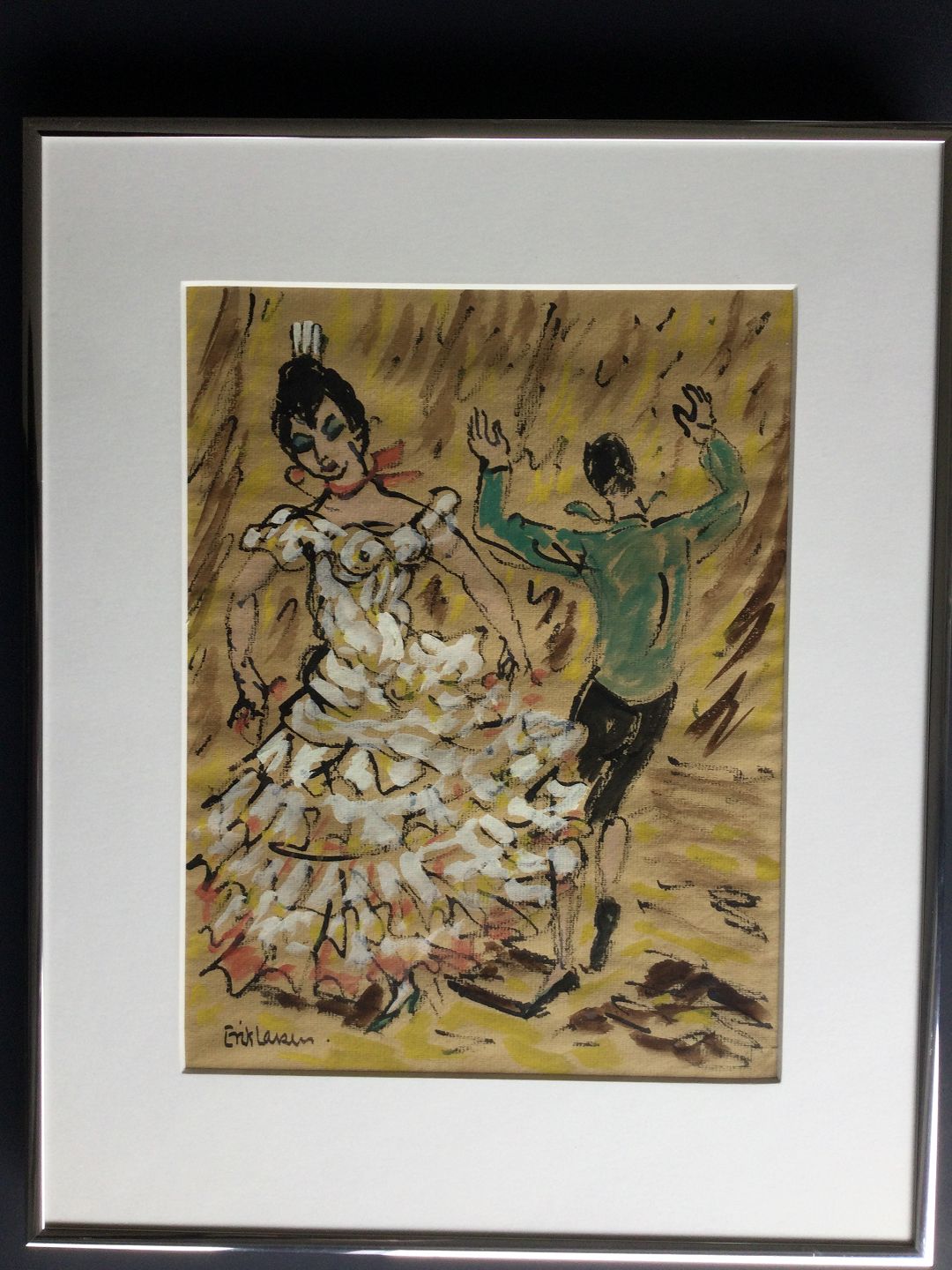 Pastel af Erik Larsen - spansk, flamingo dansende par.