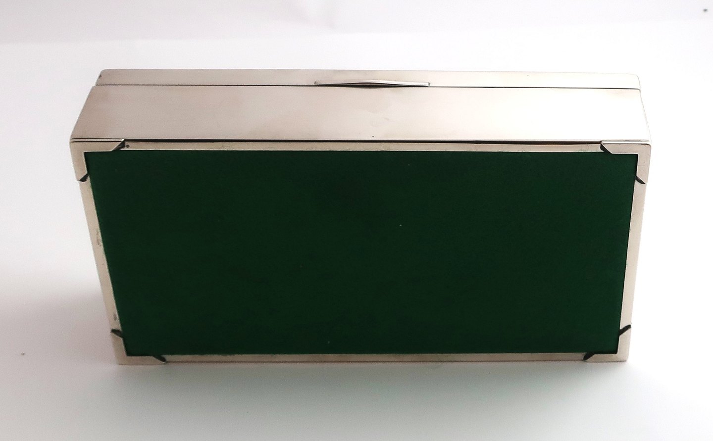 A. Michelsen. Sølvcigaret æske (830). Længde 18 cm. Bredde 10 cm. Højde 4 cm. Produceret 1943.