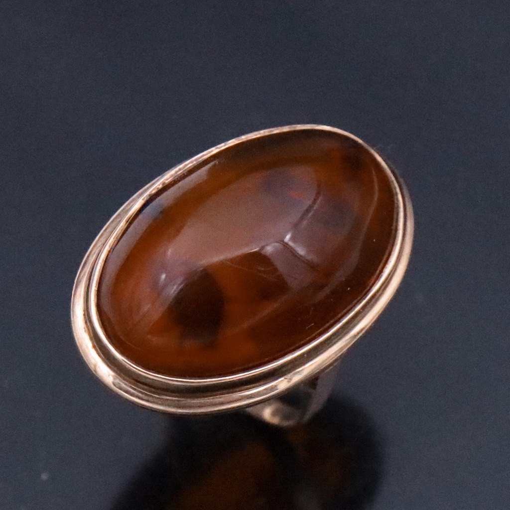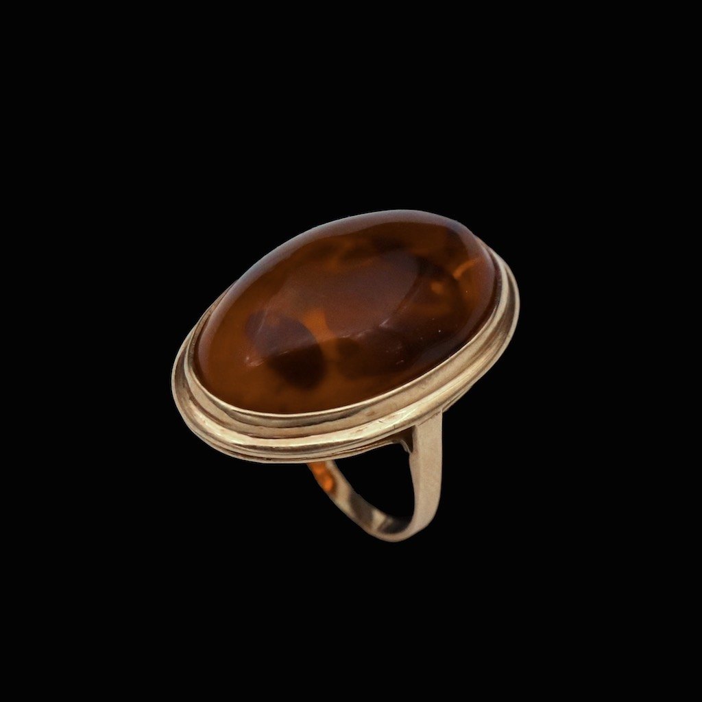 Einer Fehrn. Ring i 8k guld med rav. 1960erne.
