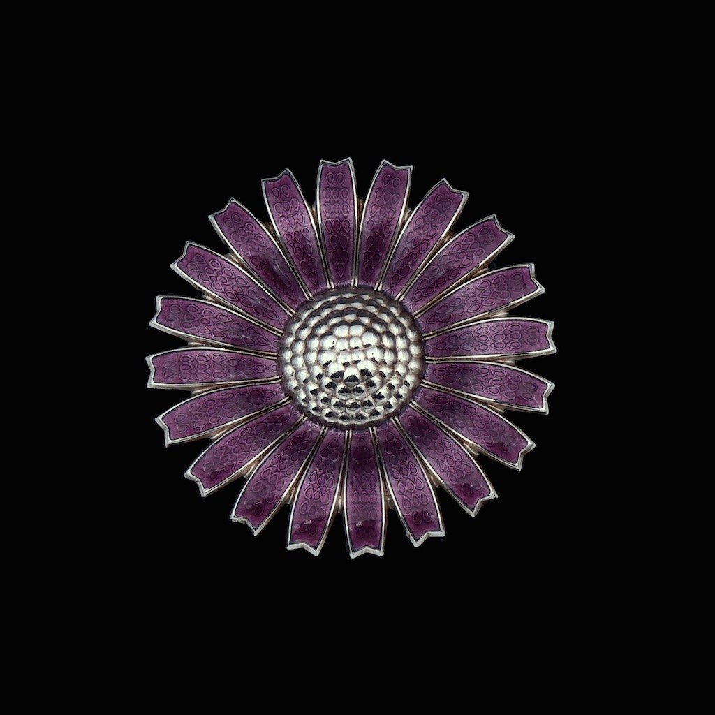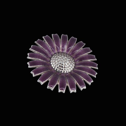 Georg Jensen Marguerit / Daisy Broche/vedhæng i Sterling Sølv med lilla emalje - 43mm