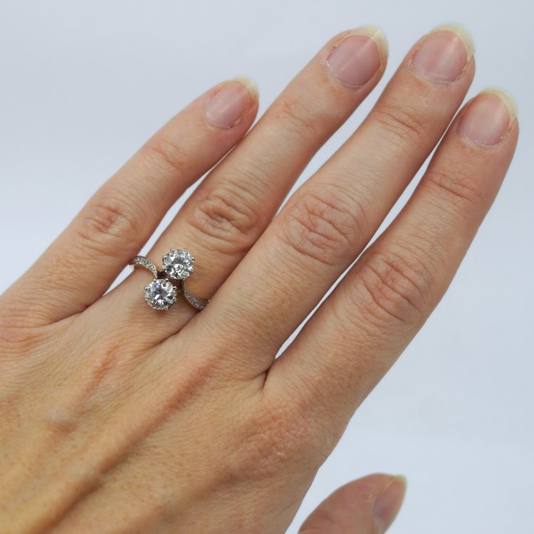Diamantring i 18 kt. guld og hvidguld med to store brillanter, i alt ca. 1,83 ct. Farve: Top Crystal (I) Klarhed: VS - SI. Ring str. 50.