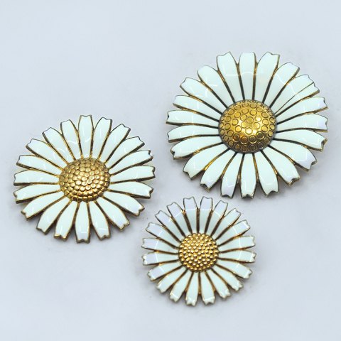Anton Michelsen Marguerit brocher. Forgyldt sterlingsølv med hvid emalje. Stemplet "A.M Sterling Denmark"