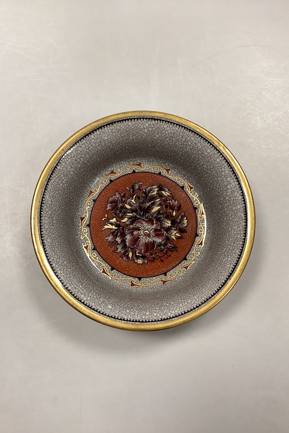 Dahl Jensen Cracked Bowl No. 129/490. Decoration in siena red, white and gold. Slight wear on the gold rim. Unique copy painted by V. Ödman.