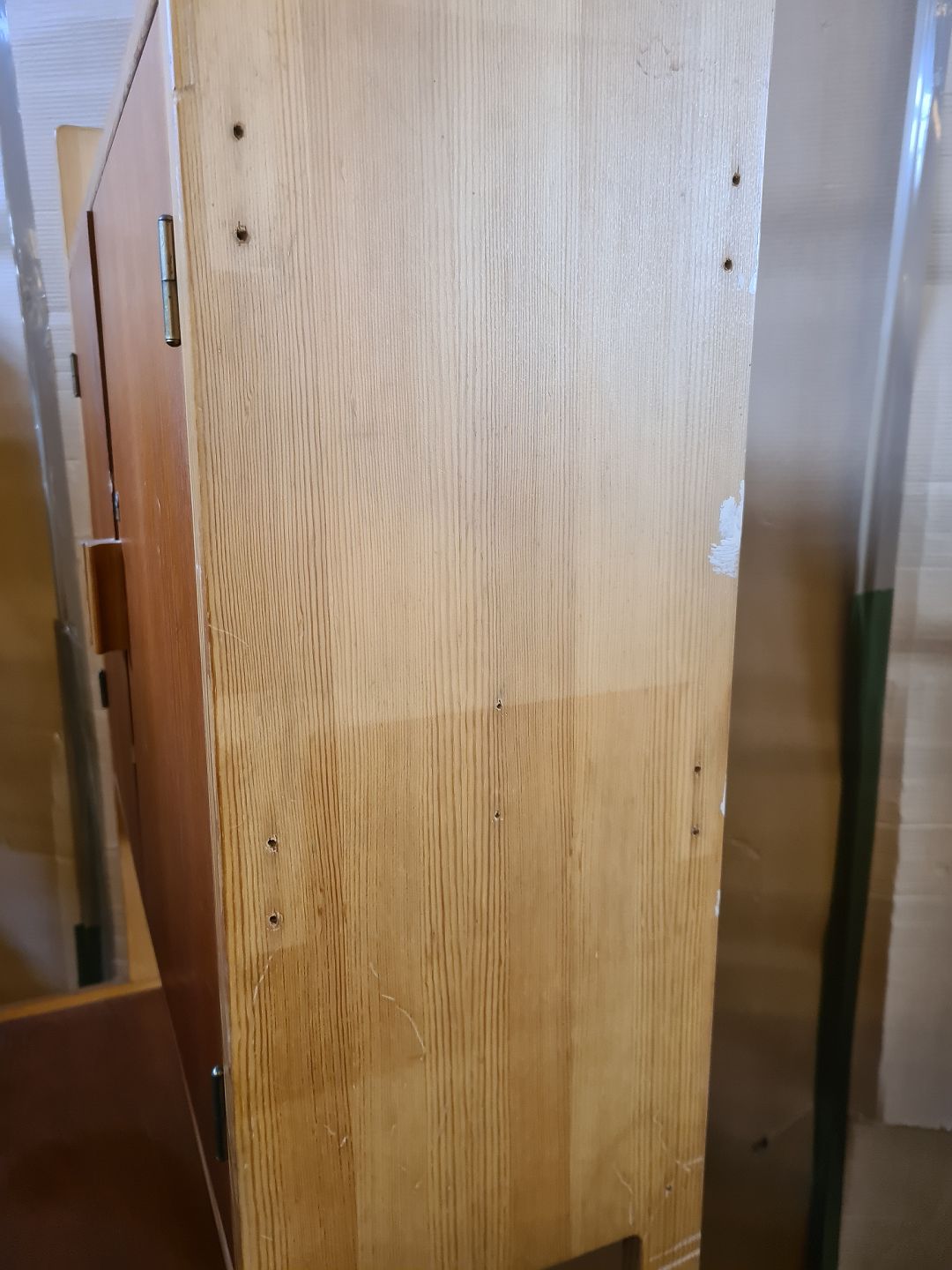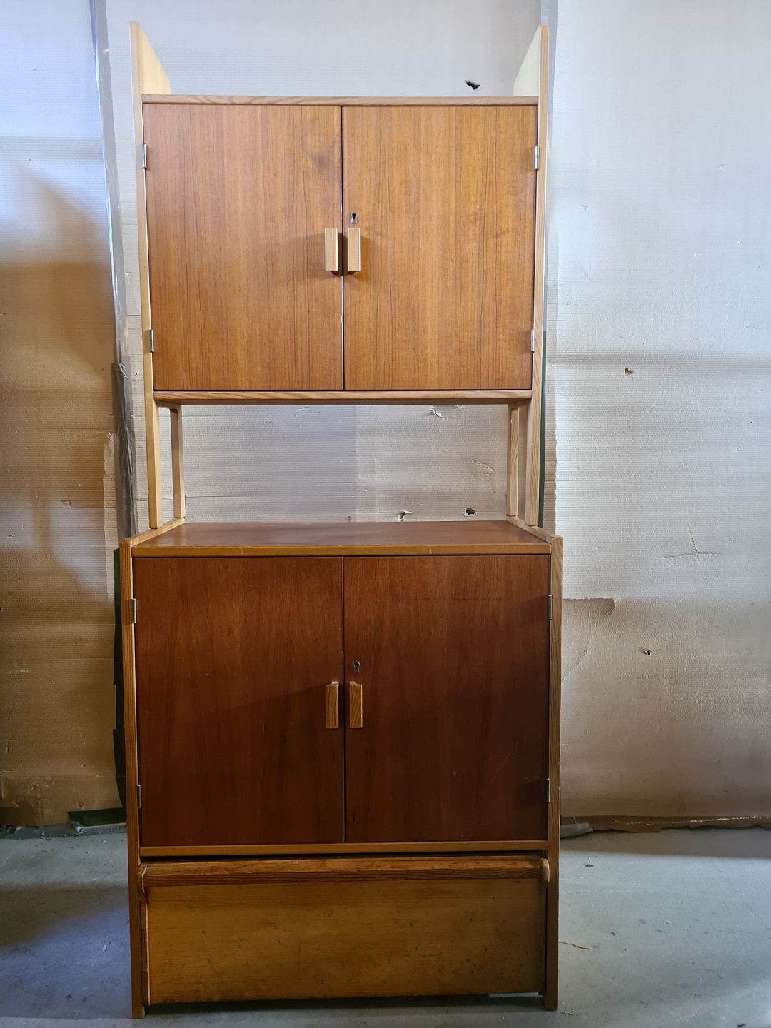 Reolsektion i massivt fyrretræ og fineret teaktræ, fra 1960erne.