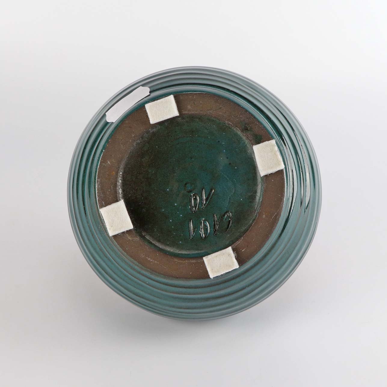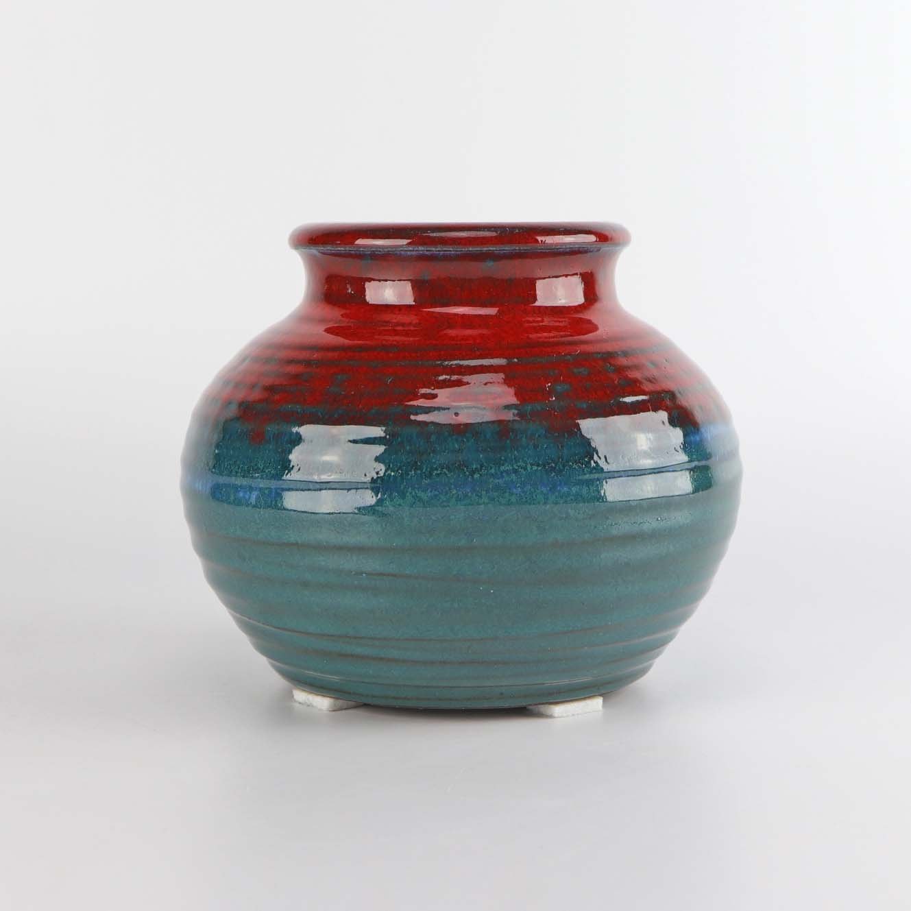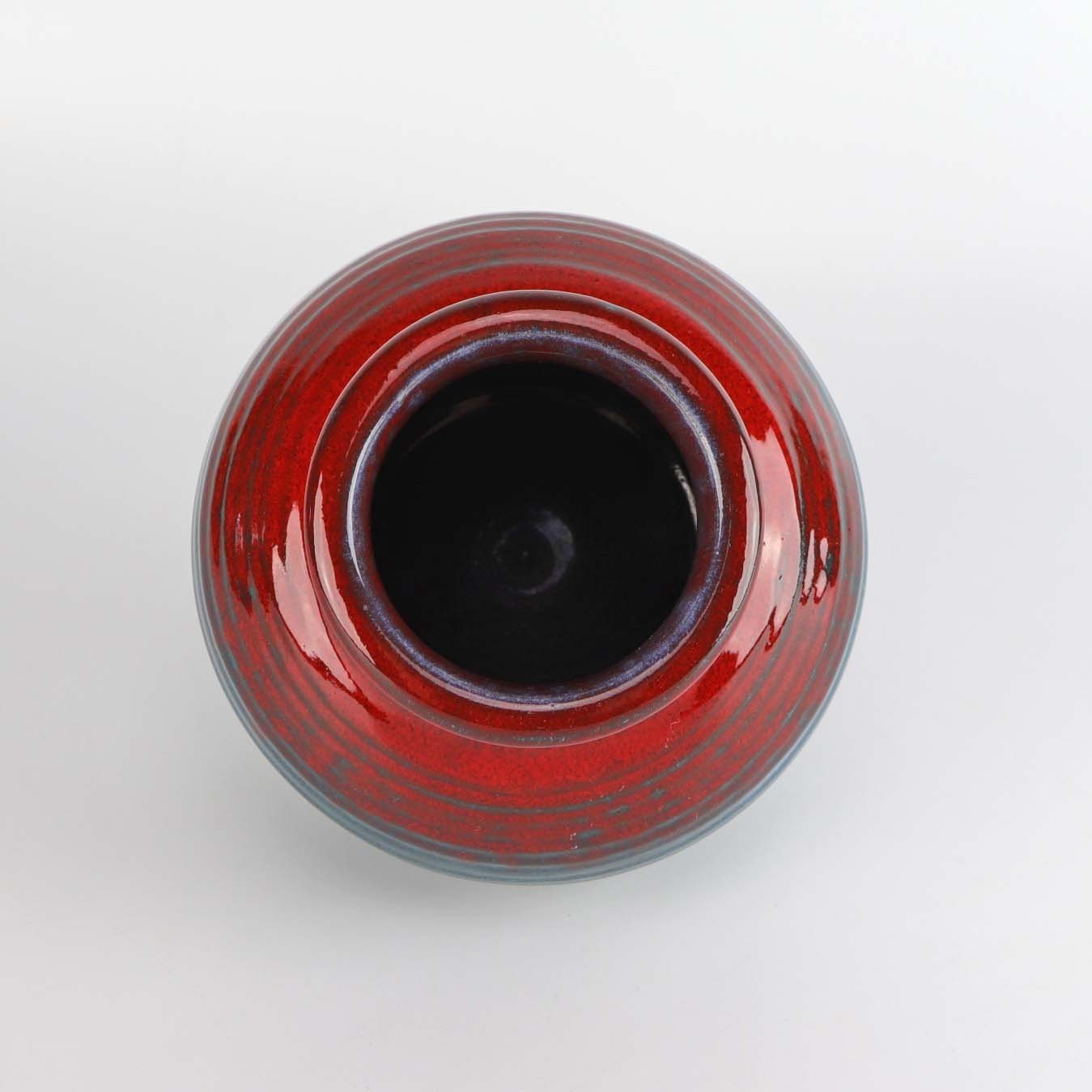 Rillet vase i stentøj i rød, blå og søgrønne nuancer nr. 6101 10