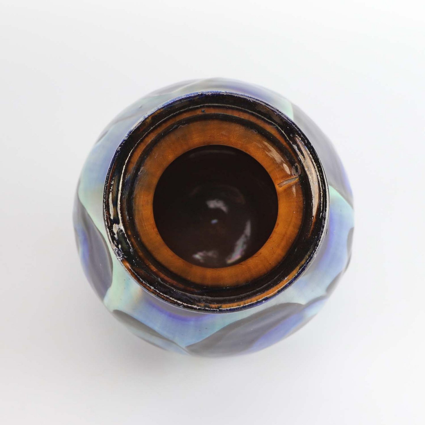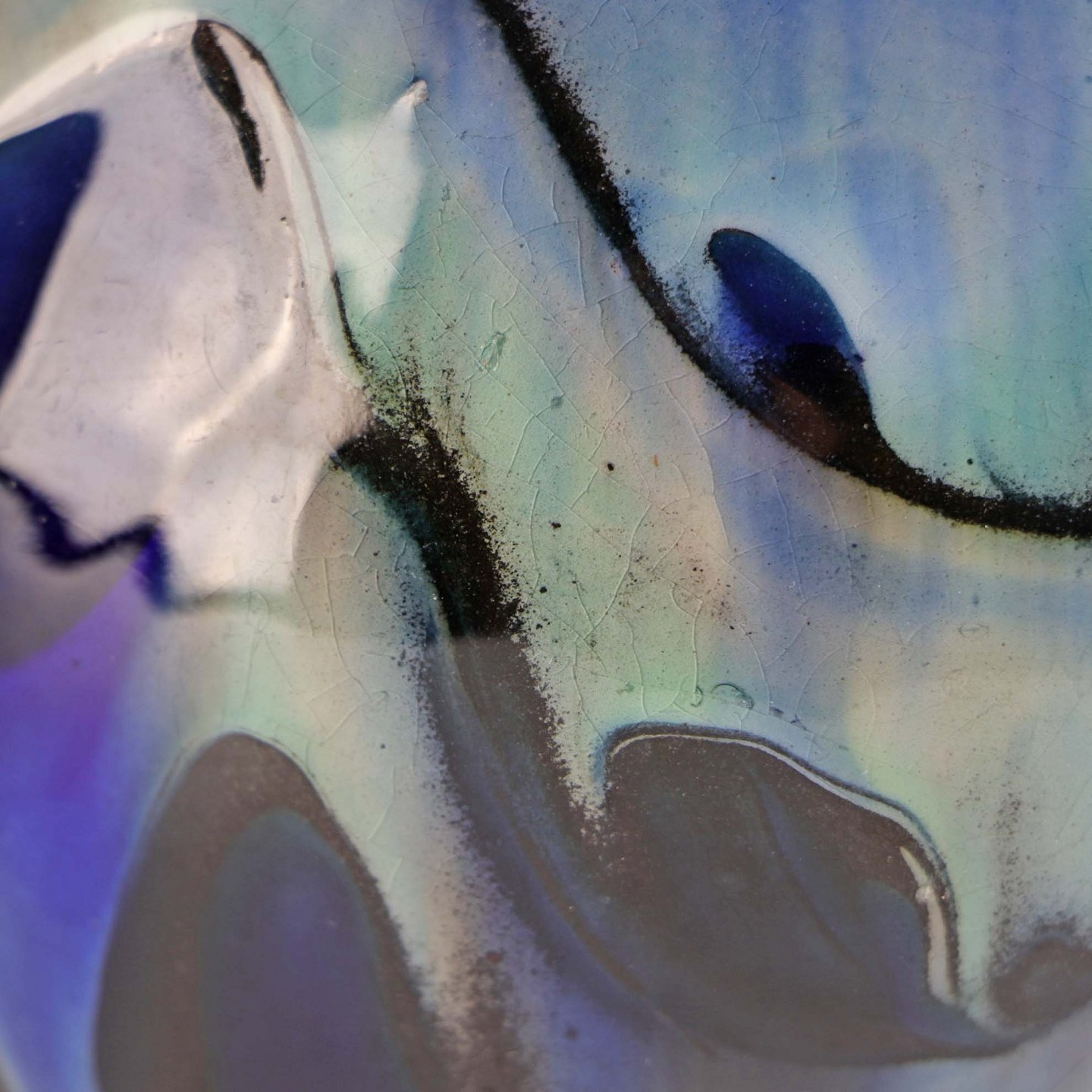 Vase i keramik med glasur abstrakt mønster i forskellige blå, grønne og sorte og brunt mønstre