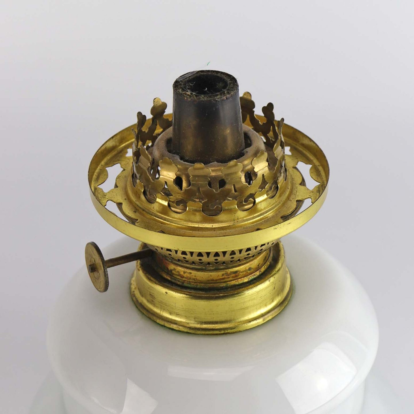 Stor olielampe model Dagmar olie med fod i hvidt opalglas. Lampen er produceret både som olielampe og som ellampe.