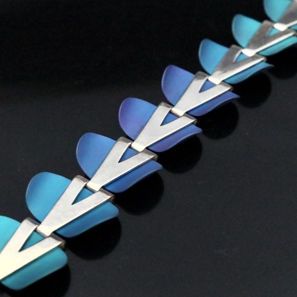 Kirsten Pontoppidan. Armbånd i sterlingsølv med farveoxideret titanium.