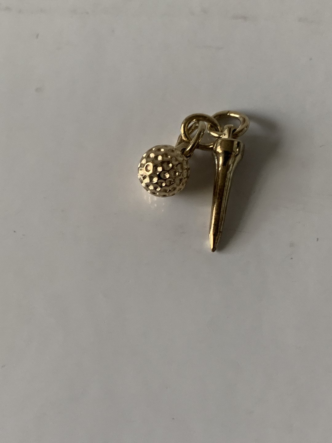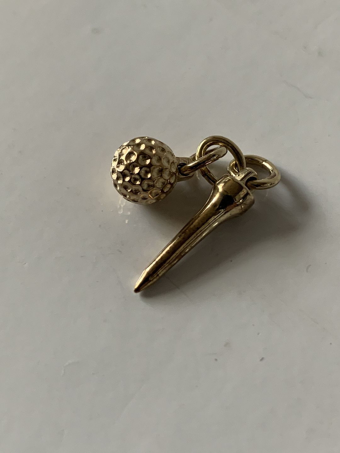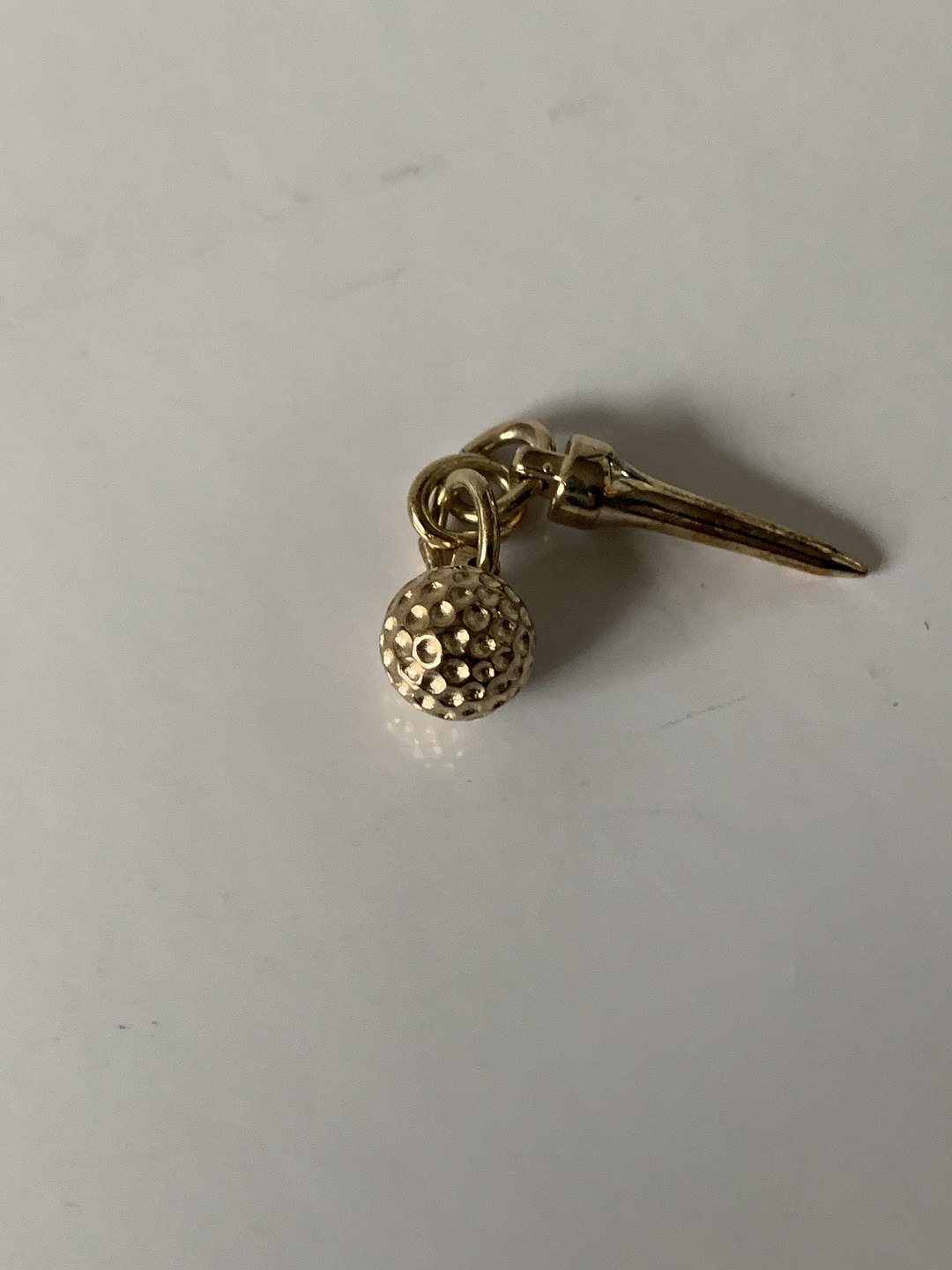 Pendant in gold, shaped like a golf ball and tee, in 8K gold, stamped 333.