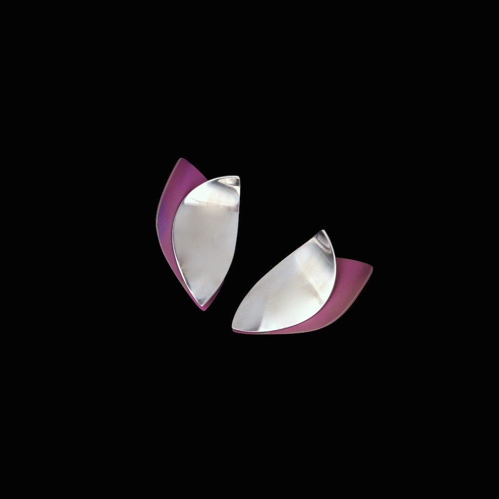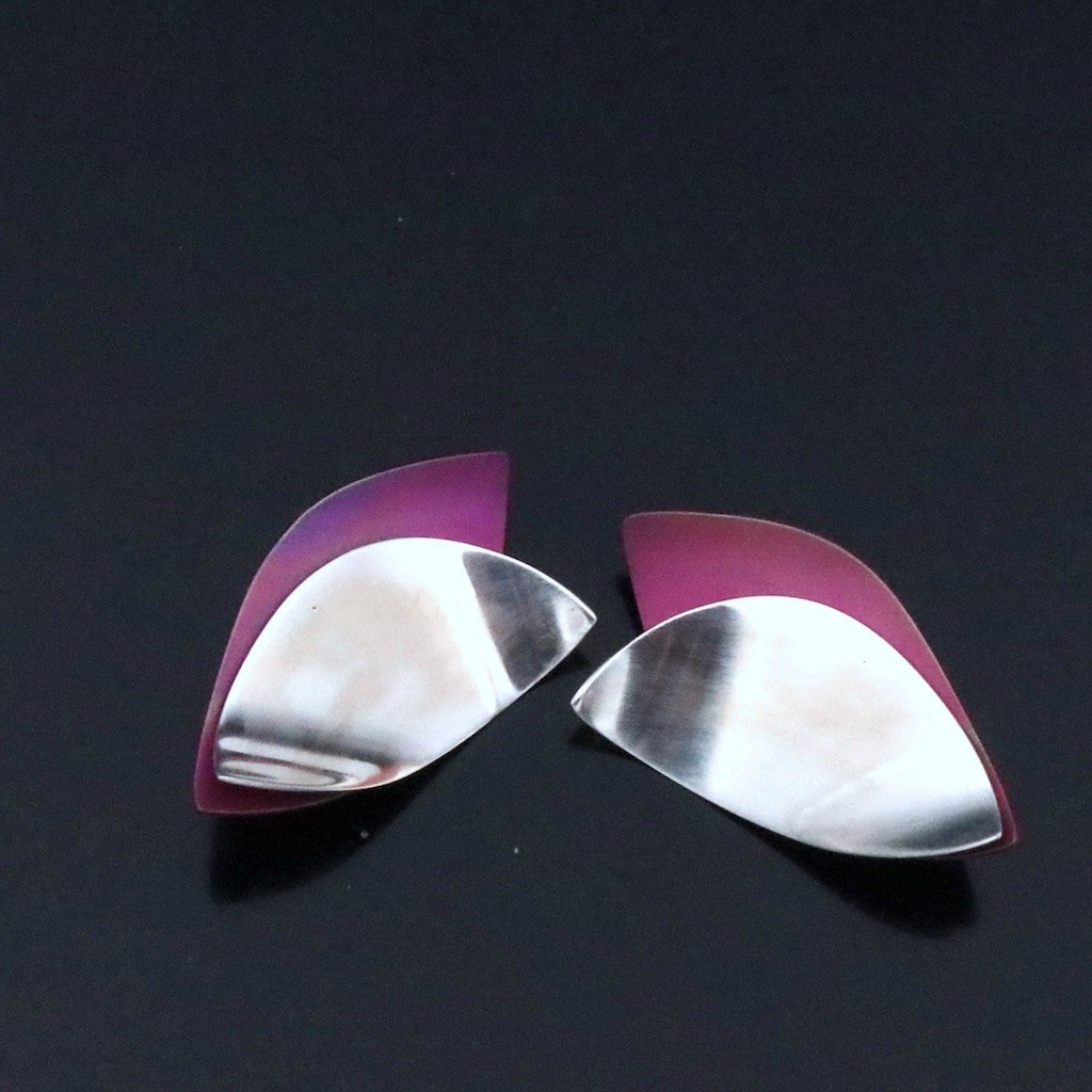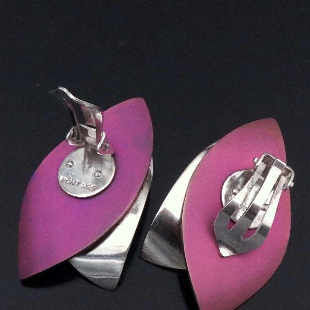 Kirsten Pontoppidan. Unika Sterling Silver Ear Clips with Color-Oxidized Titanium.
