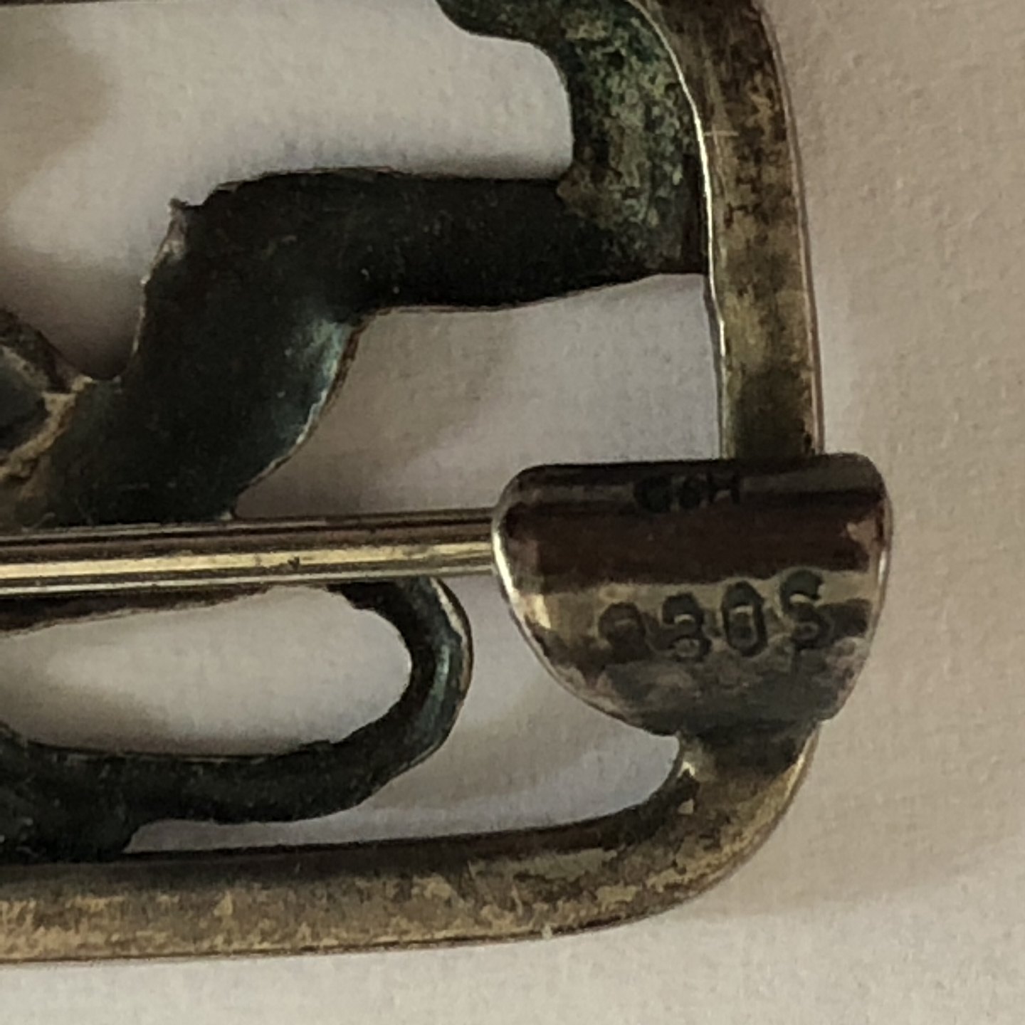 Brooch with lion, approx. 4 x 1.5 cm, stamped, nice used condition.