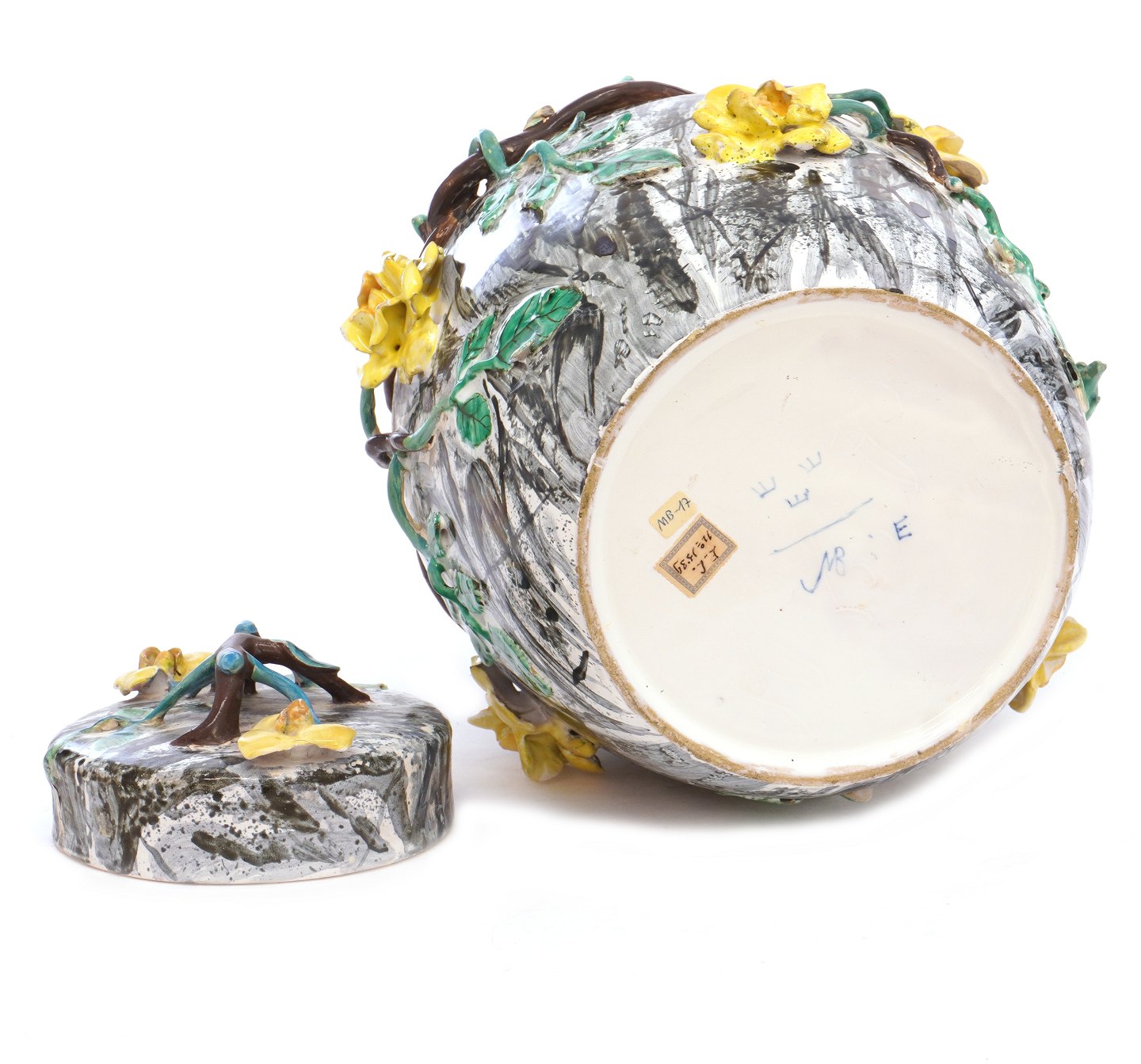 Polykromdekoreret potpourrivase i fajance. Signeret Marieberg ca. år 1765. H: 27cm