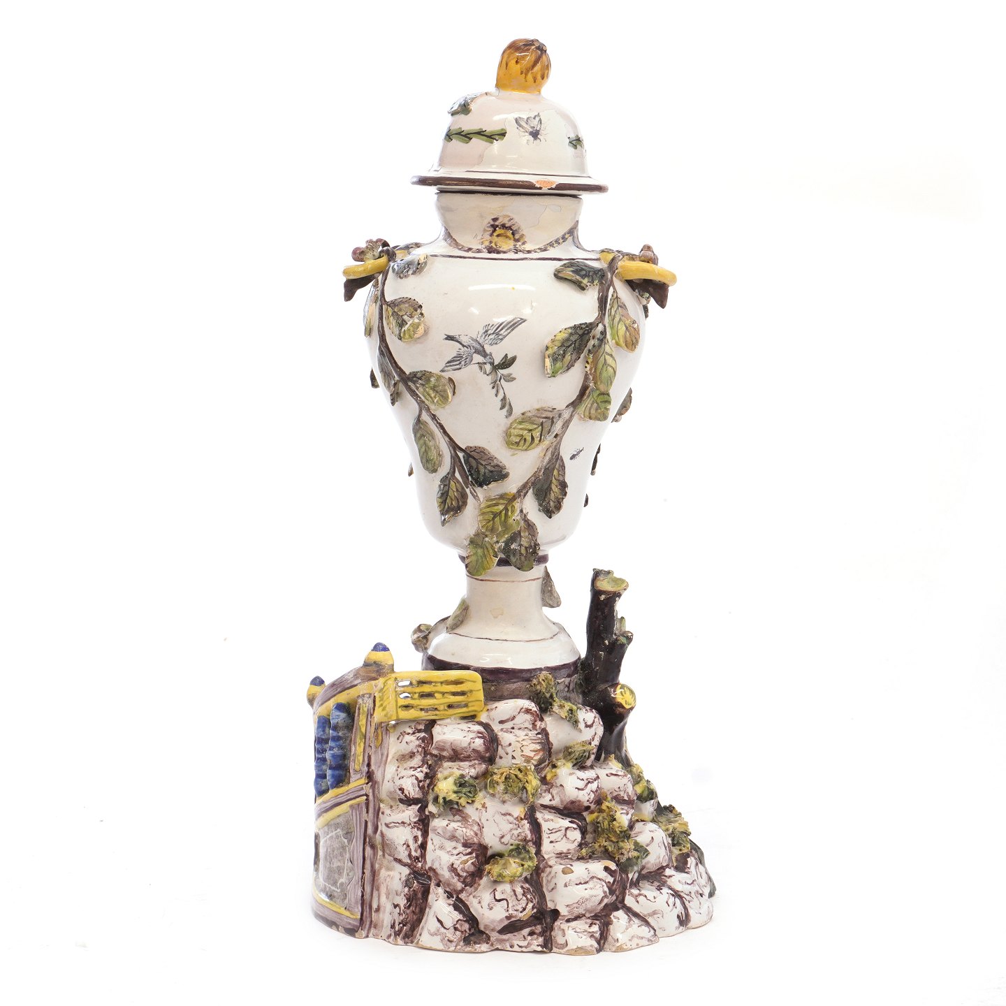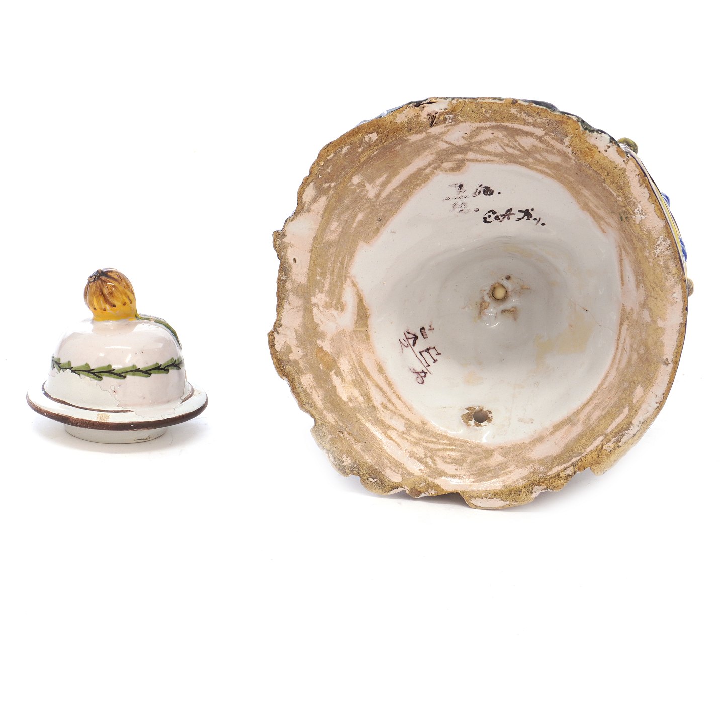 Signeret polykromdekoreret terrassevase med to får. Stralsund dateret 7/12 1768. H: 28cm